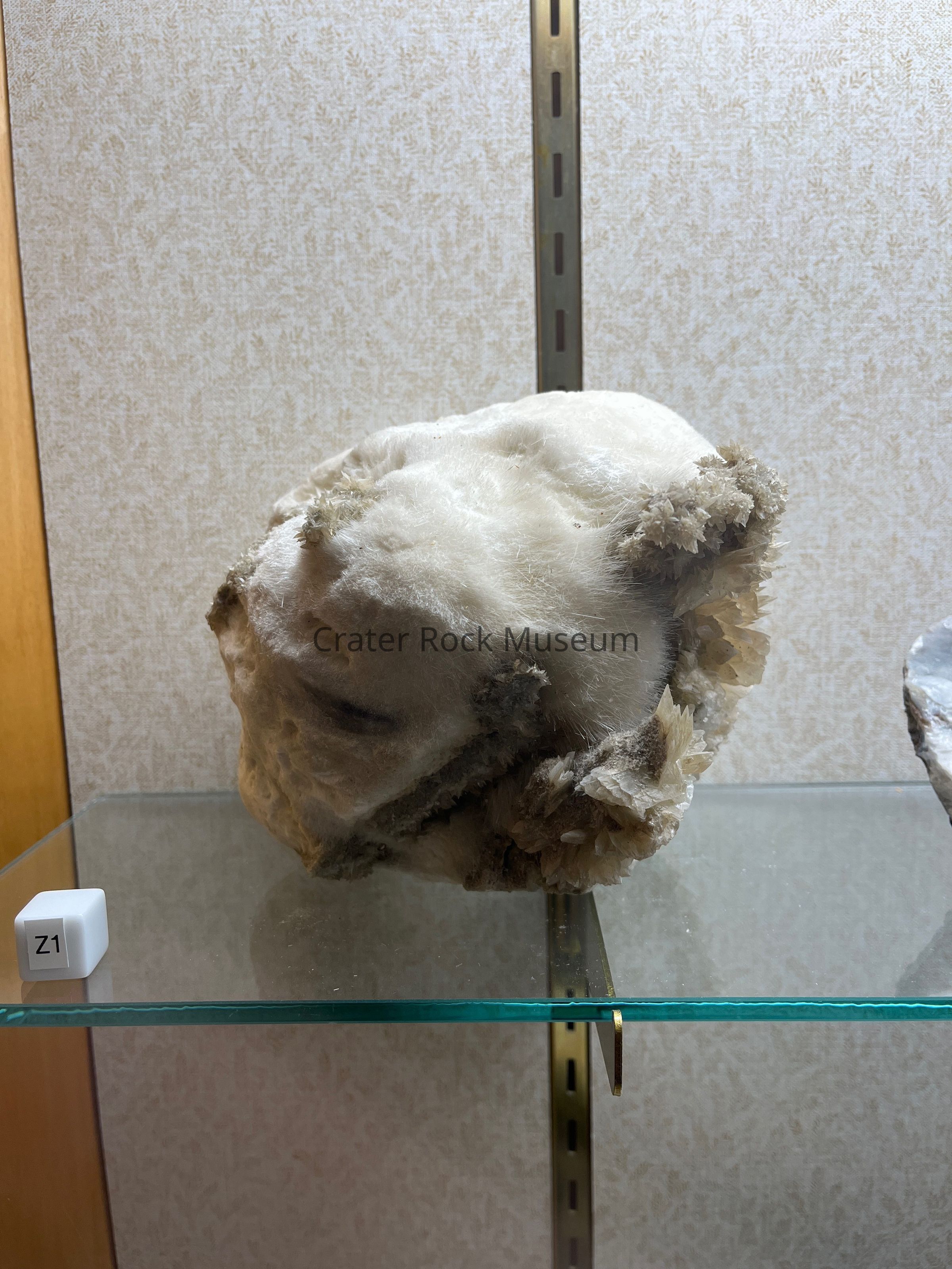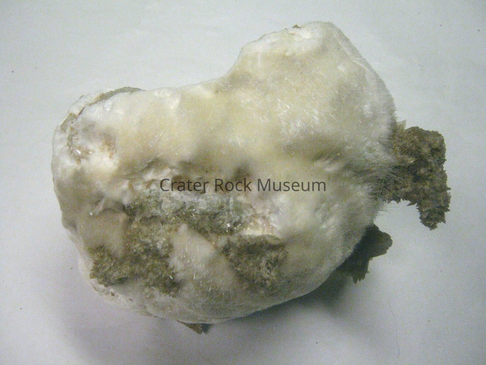 Occurrence: Ulexite is found with the mineral borax and is directly deposited in arid regions from the evaporation of water in intermittent playa lakes. The precipitated ulexite commonly forms a "cotton ball" tuft of acicular crystals. Ulexite is also found in a vein-like bedding habit composed of closely-packed fibrous crystals, also known as "TV rock" or "TV stone" due to its unusual optical characteristics. The fibers of TV rock act as fiber optics, transmitting light along their lengths by internal reflection, and when a piece of TV rock is cut with flat polished faces perpendicular to the orientation of the fibers a good-quality specimen will display an image of whatever surface is adjacent to its other side.