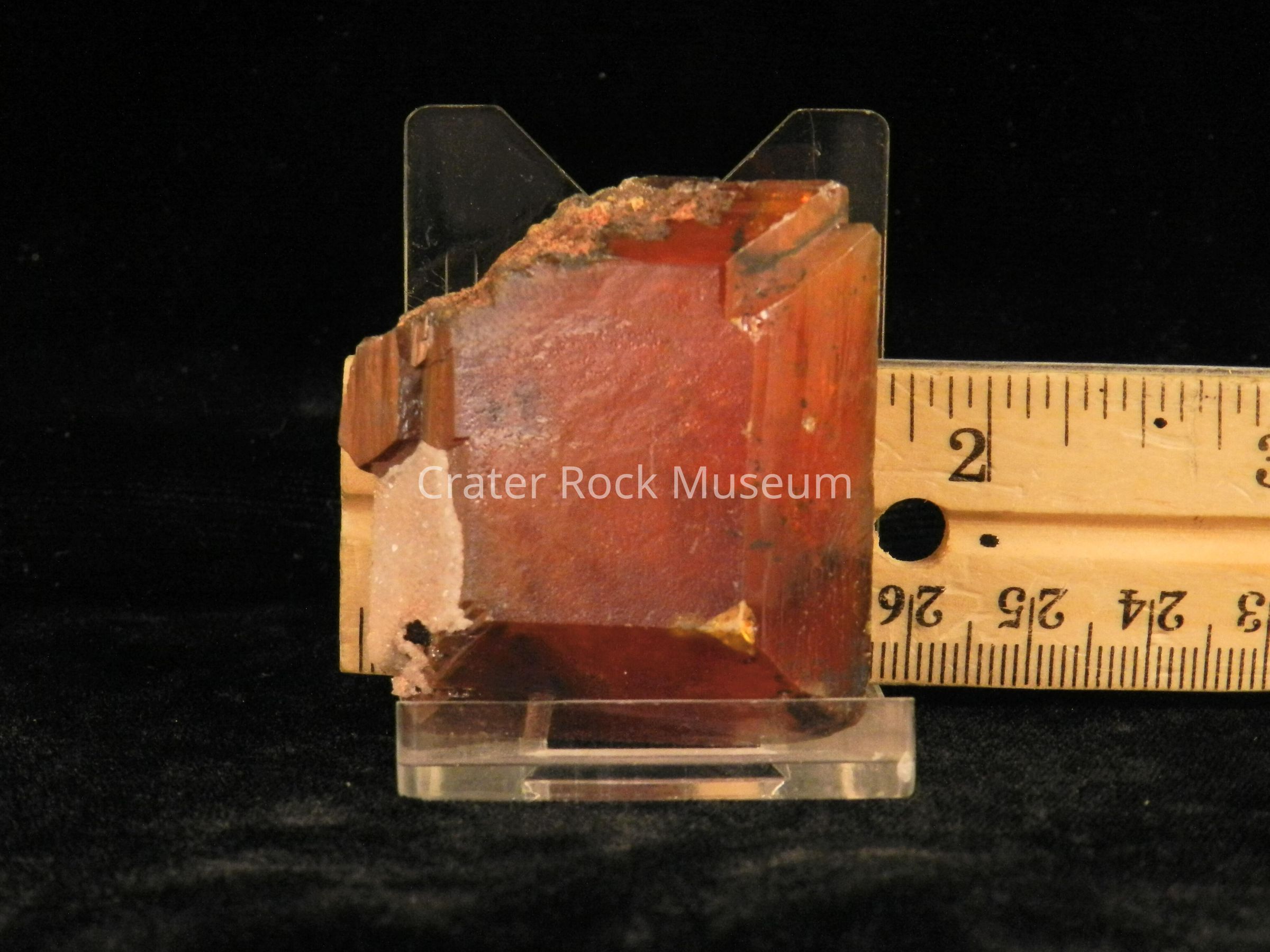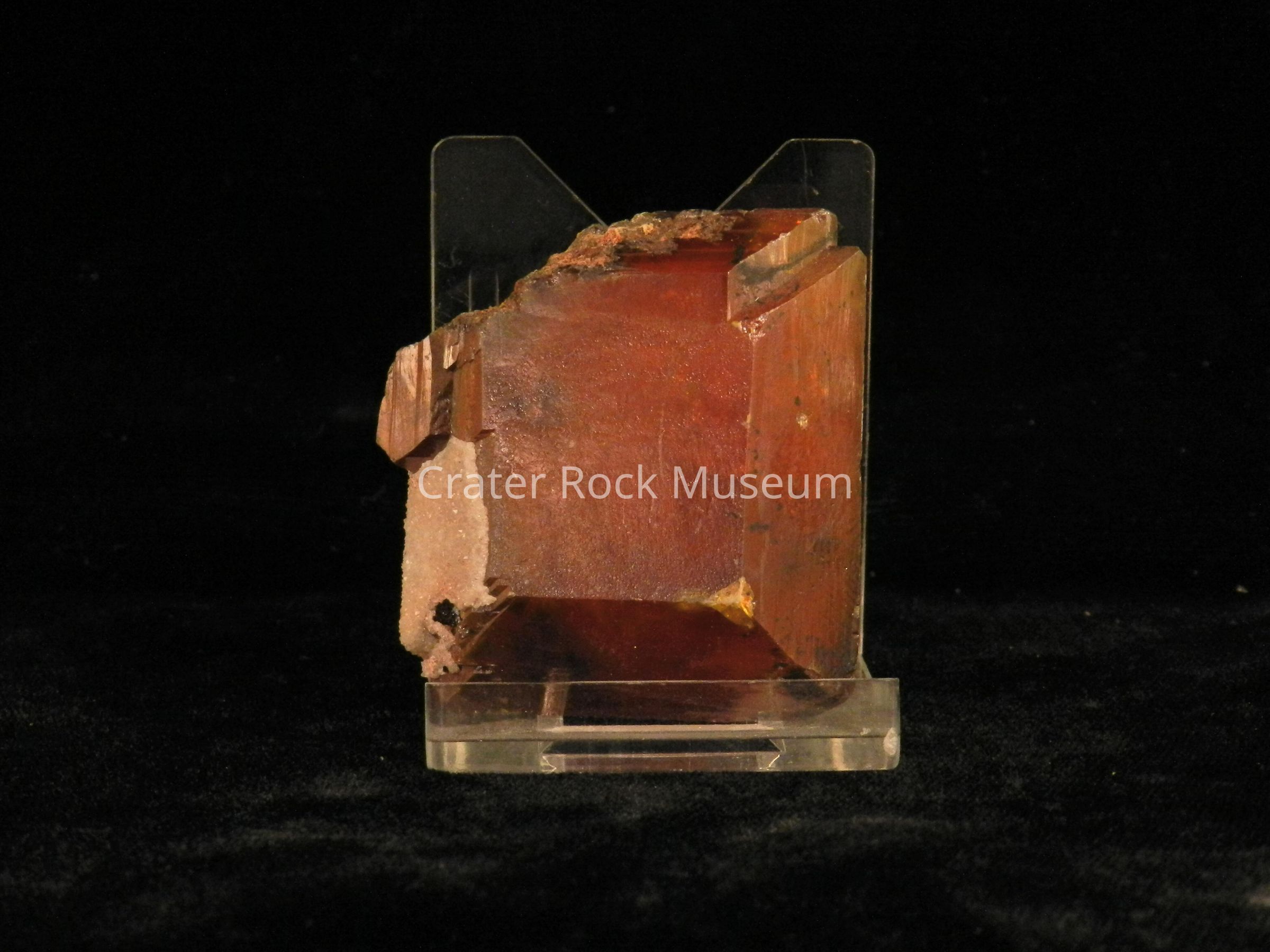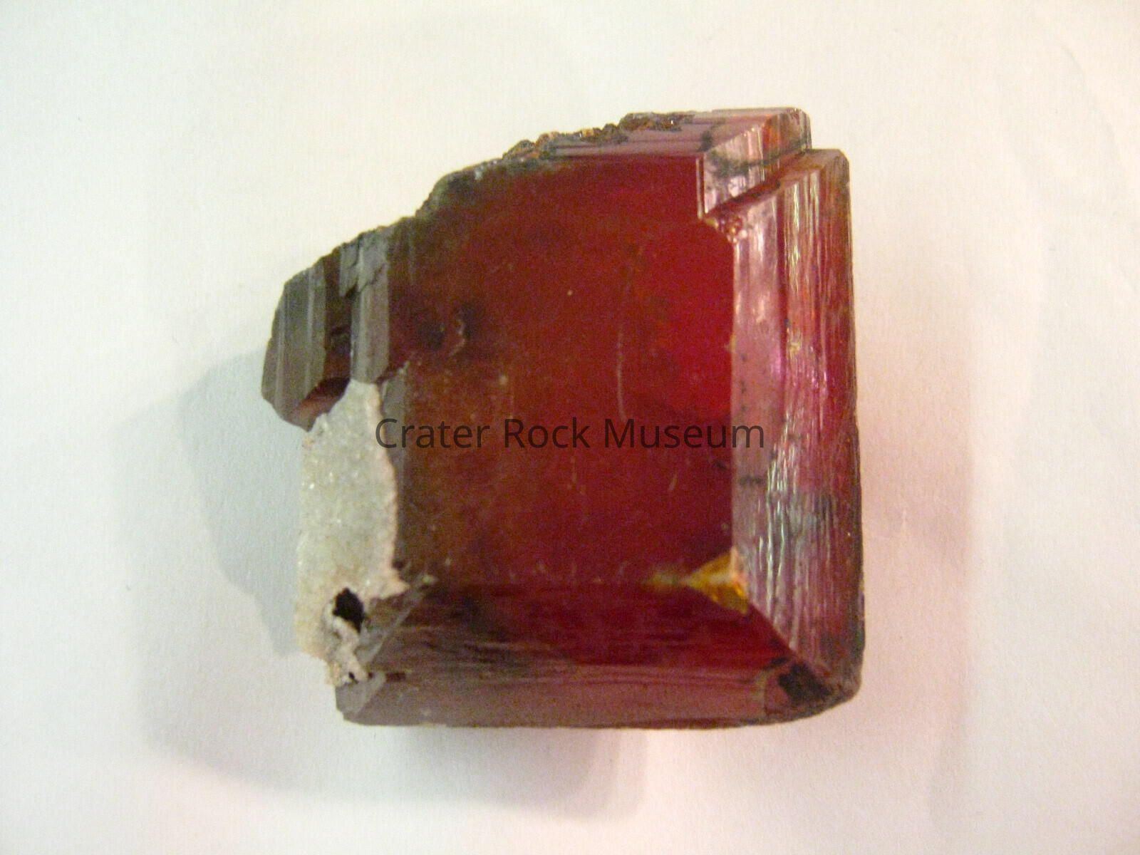 Description: Brownish red crystal shaped like a square but chipped off on one of the corners