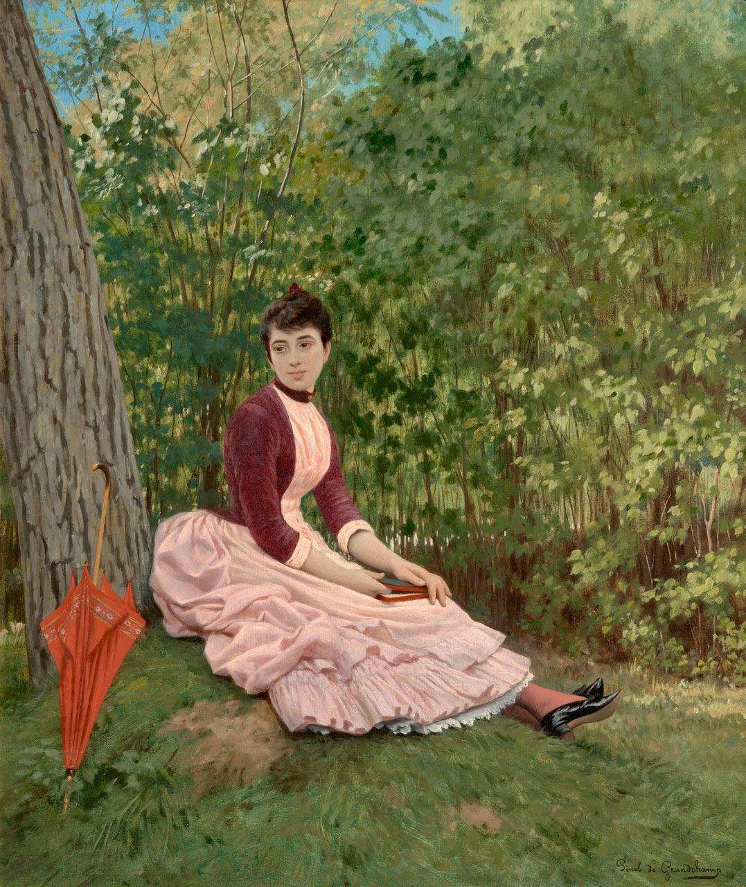 Jeune Fille Lisant au Pied d'un Grand Arbre