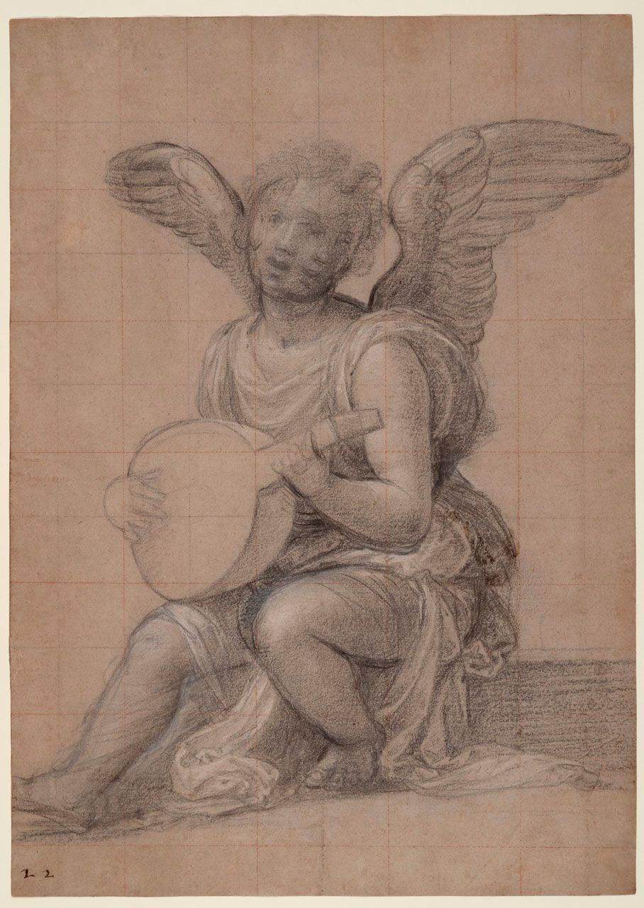 Black, white, and red chalk on beige laid paper
