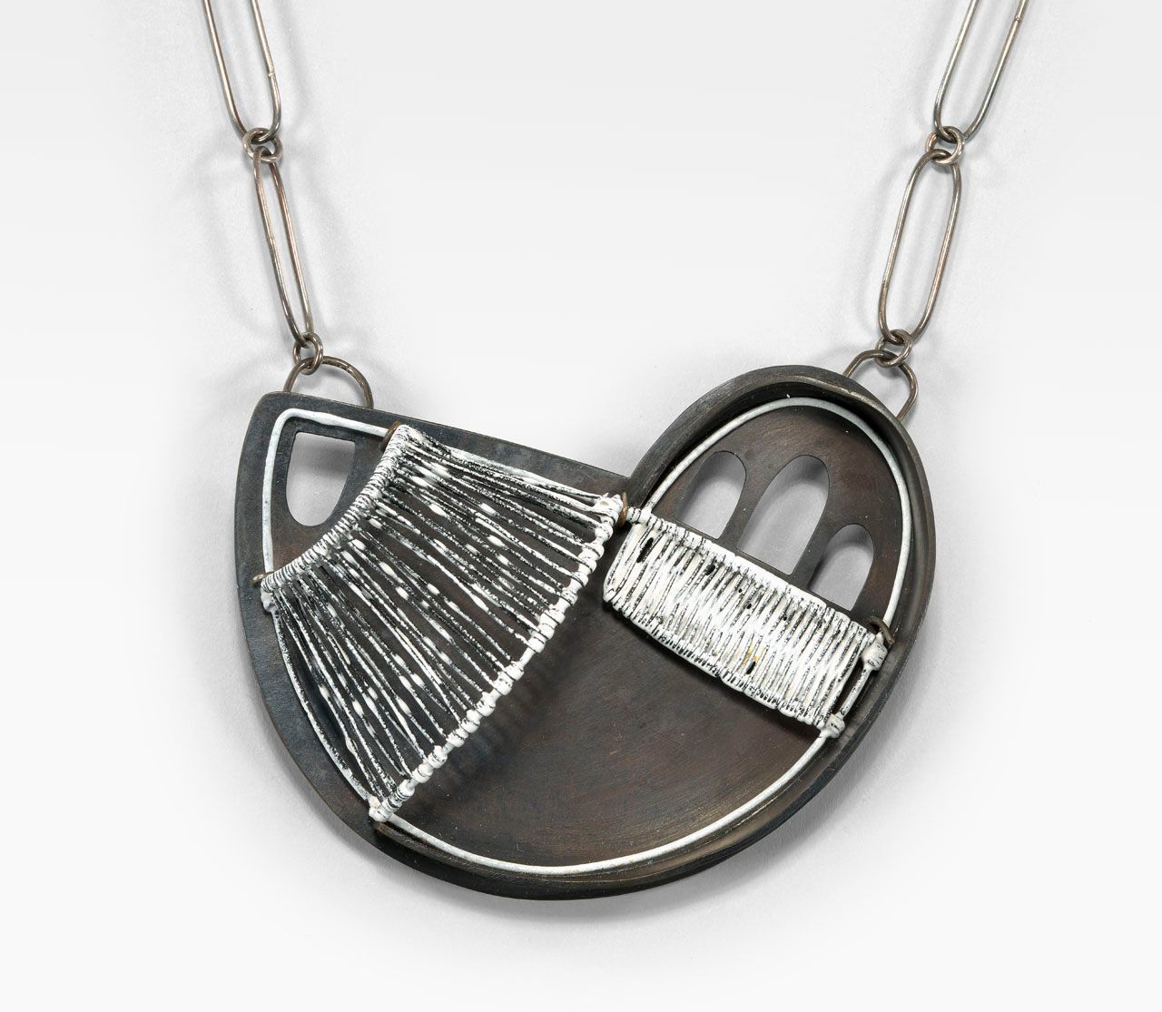 Copper, sterling silver, steel, and enamel