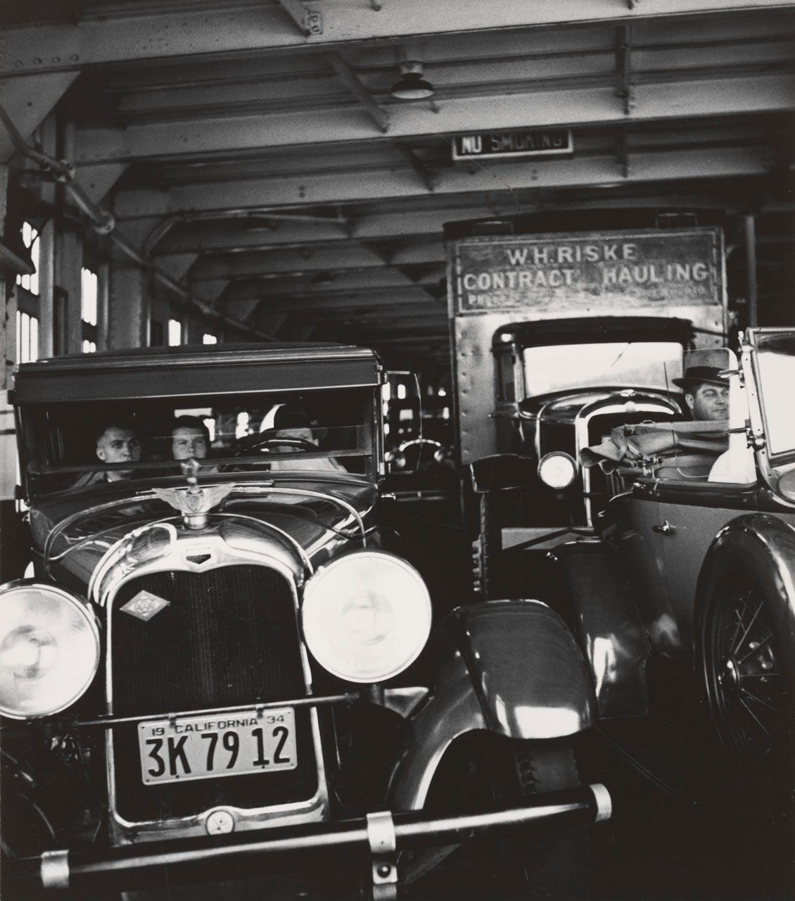 User Text: A German émigré, John Gutmann was one of the first to develop an important photography program on the West Coast, doing so at San Francisco State College (now University) in 1946. Gutmann originally came to the United States from Berlin in 1933. Although educated in art history and philosophy, he was self-taught in photography. Gutmann arrived with press credentials, however, and readily found freelance work. The diversity of American city life and its amusements became his favorite topic of exploration. For these, he shot black and white documentary-style images using available light. Often favoring low vantage points, Gutmann heightened pictorial tensions by exaggerating perspective so that even ordinary scenes of daily life such as this packed ferry deck seem somehow strange and marvelous.