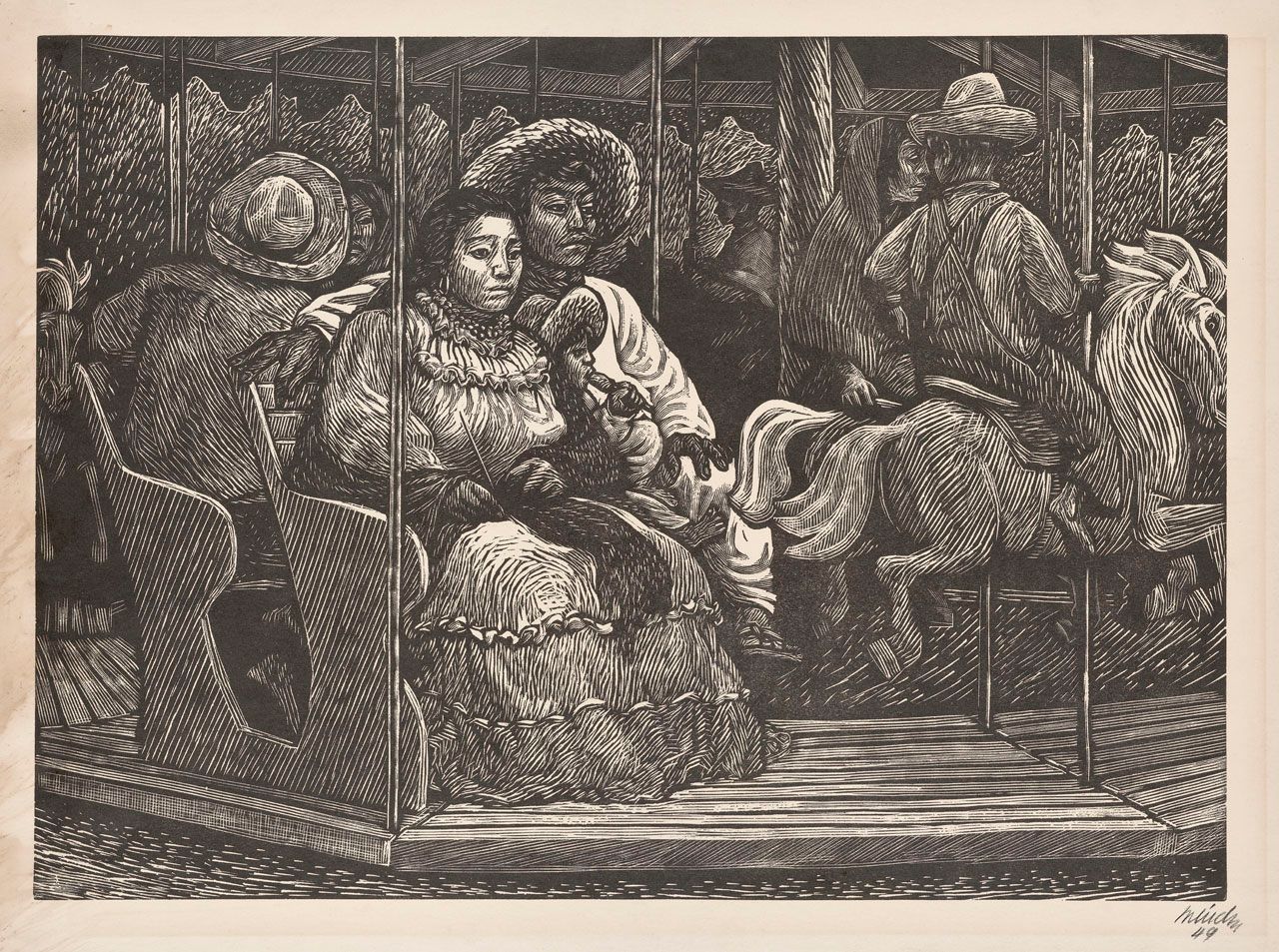 Cataloging note: The editors have examined an impression, signed and dated 49 in graphite in Méndez’s hand and with embossing of the composition visible on the verso, but with dimensions, 29.6 x 41.5 cm., that are notably smaller than other examined impressions and the original linoleum block. The method by which this impression was produced is not known.
