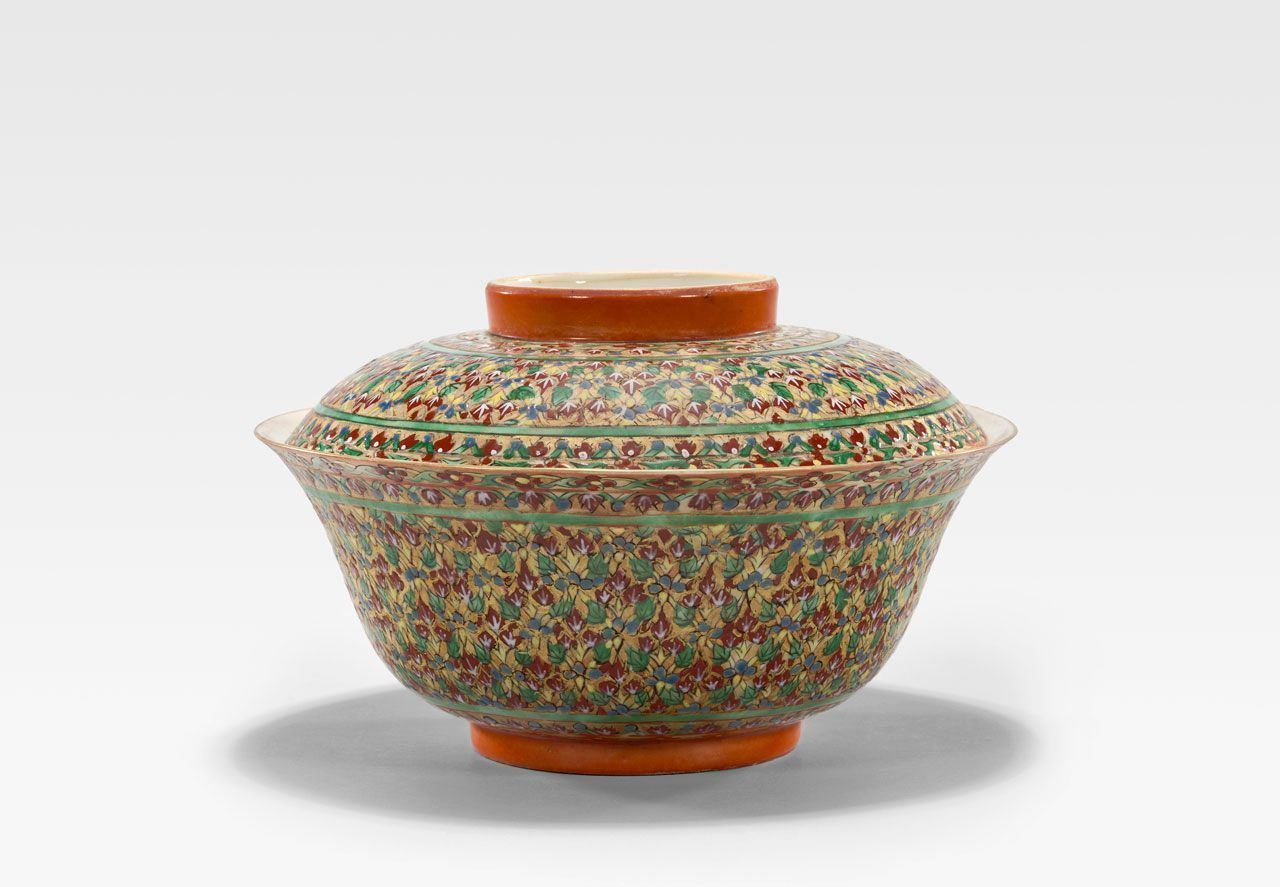 Porcelain with enamels, gold, and clear glaze, Bencharong ware, Lai Nam Thong type