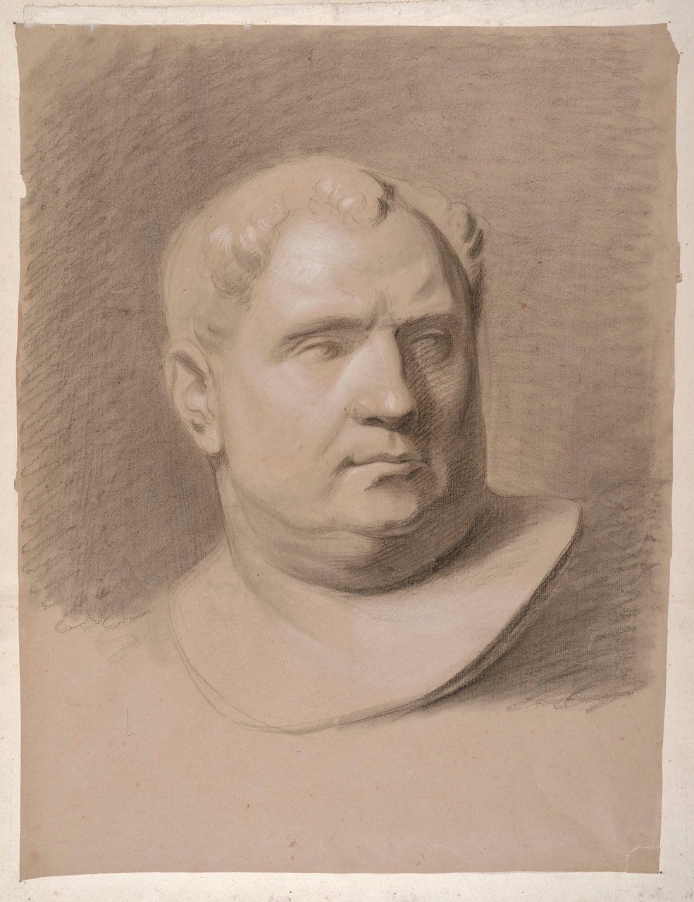 Black chalk with white chalk heightening on paper