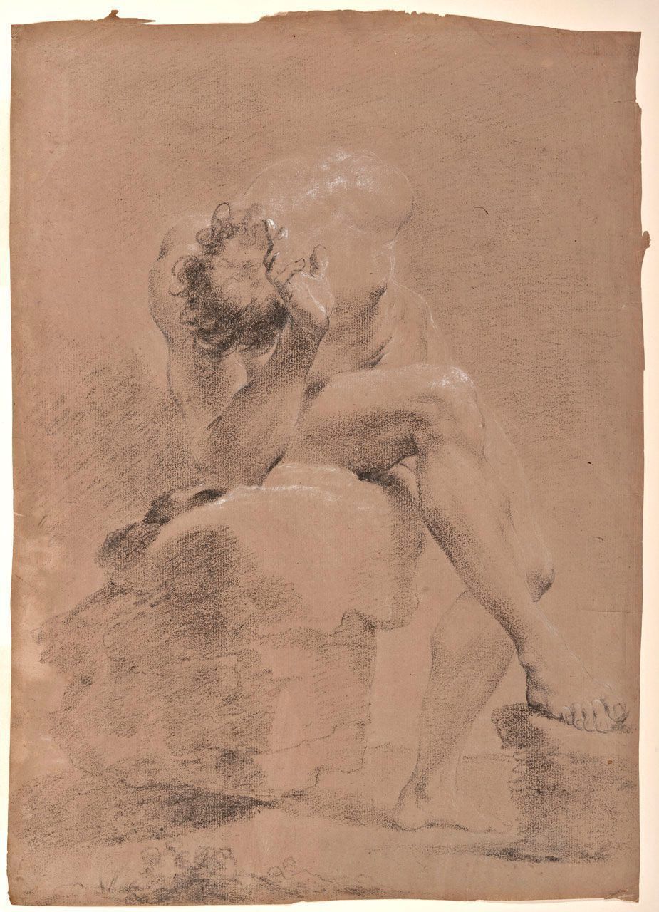 Male Nude Seated among Rocks