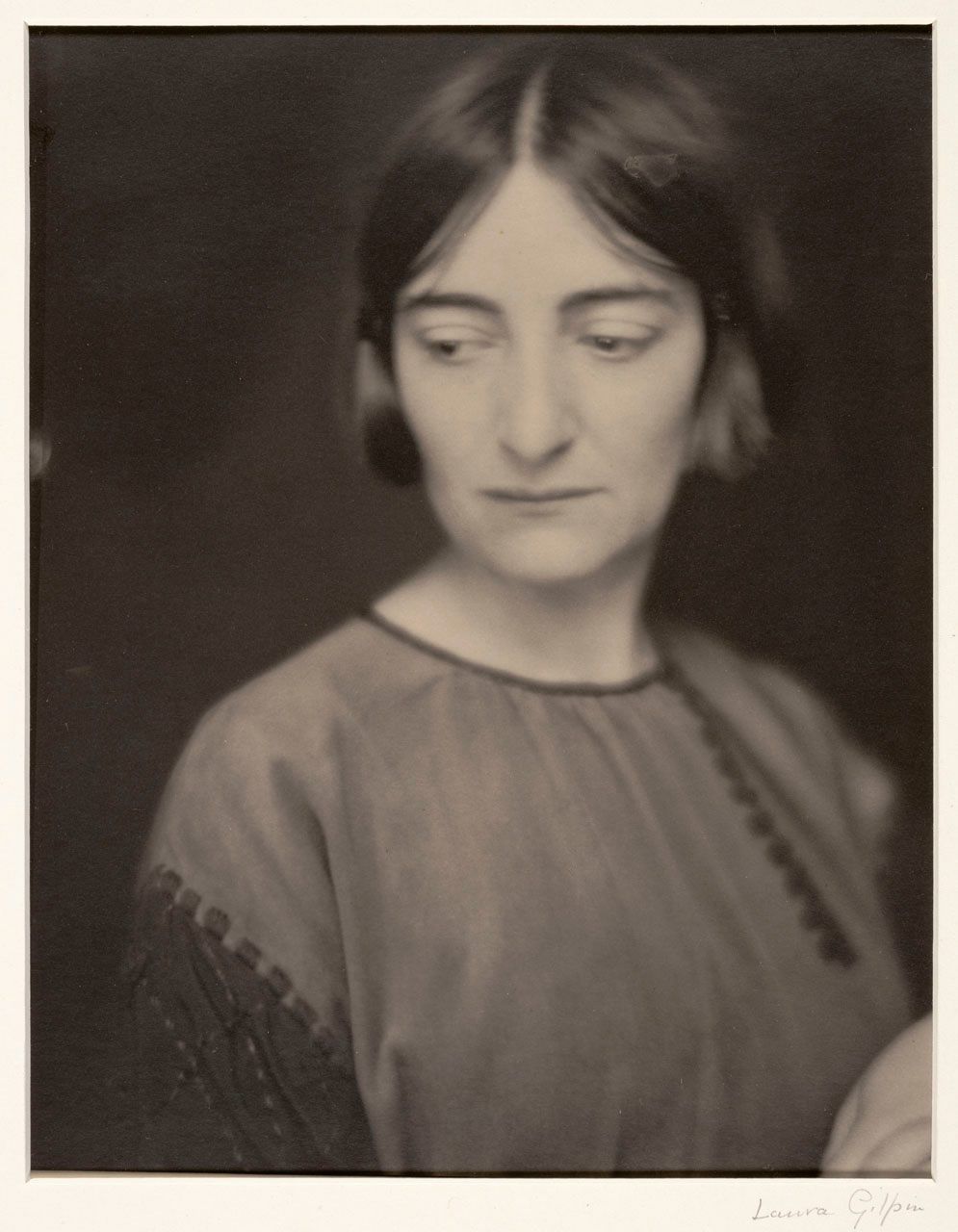In 1916, after deciding to seek formal training, Gilpen heeded Käsebier’s suggestion that the young artist move to New York City to attend the school of photographer Clarence H. White. Gilpen, then in her early twenties, shared a city apartment with three other young women, all artists, one of whom was the sitter for this 1921 portrait, sculptor Brenda Putnam.