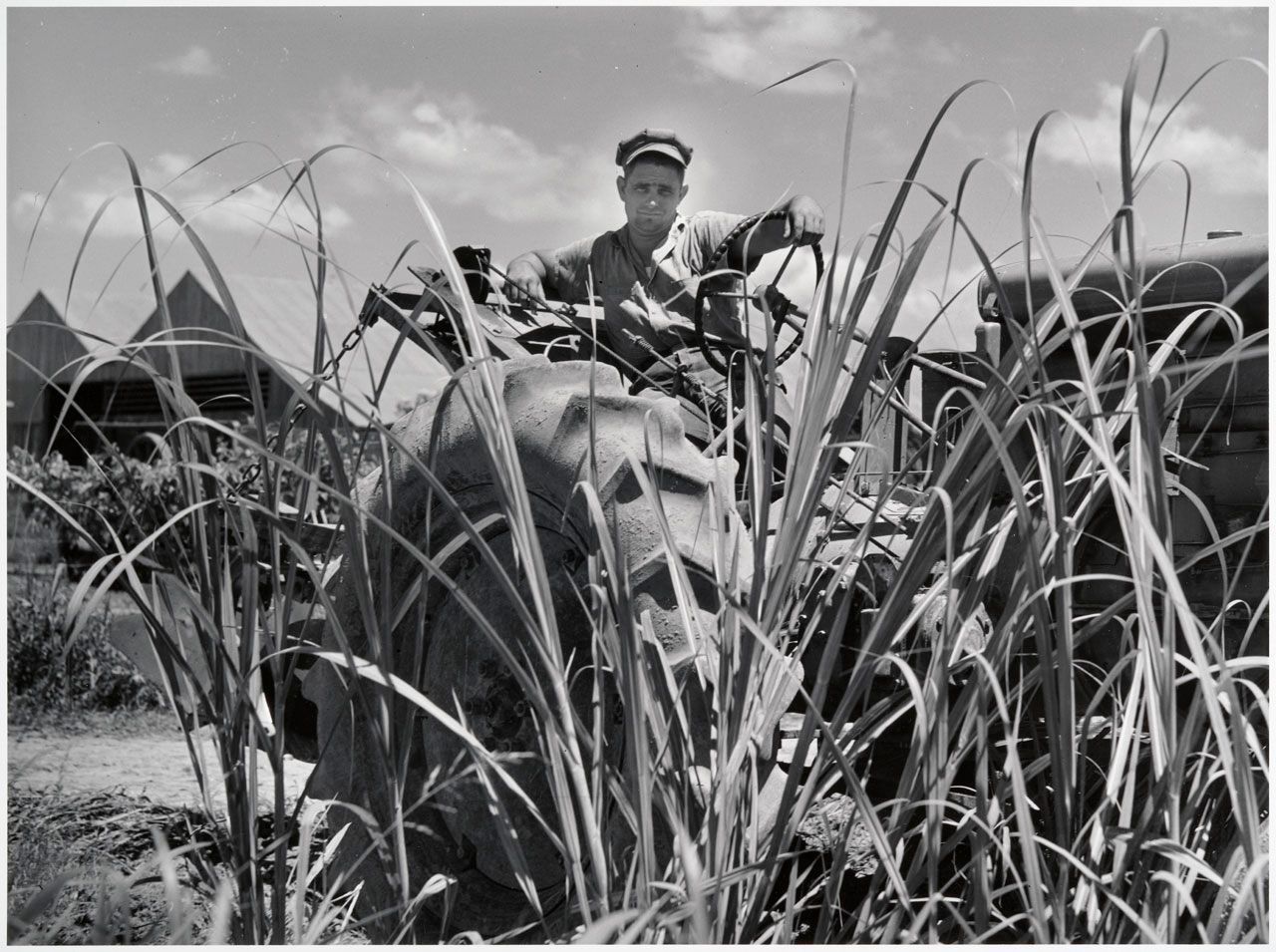 One of the tractors cultivating sugar cane on Terrebonne Project, Schriever, Louisiana