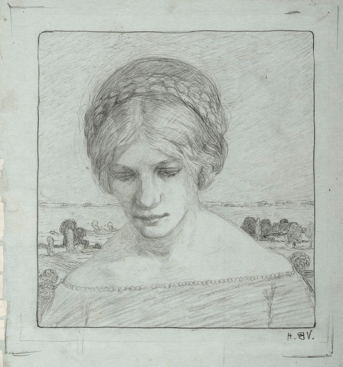 Info Page Comments: Initialed "H.B.V." lower right. Pencil drawing of a similar subject, verso.