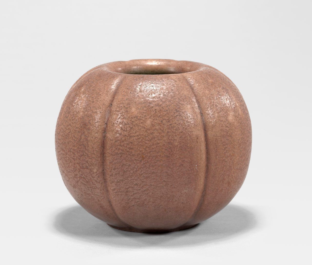 Pumpkin Shaped Vase with a Pinkish Brown Glaze