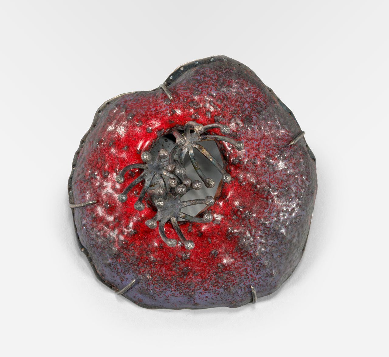 Copper, enamel, and sterling silver
