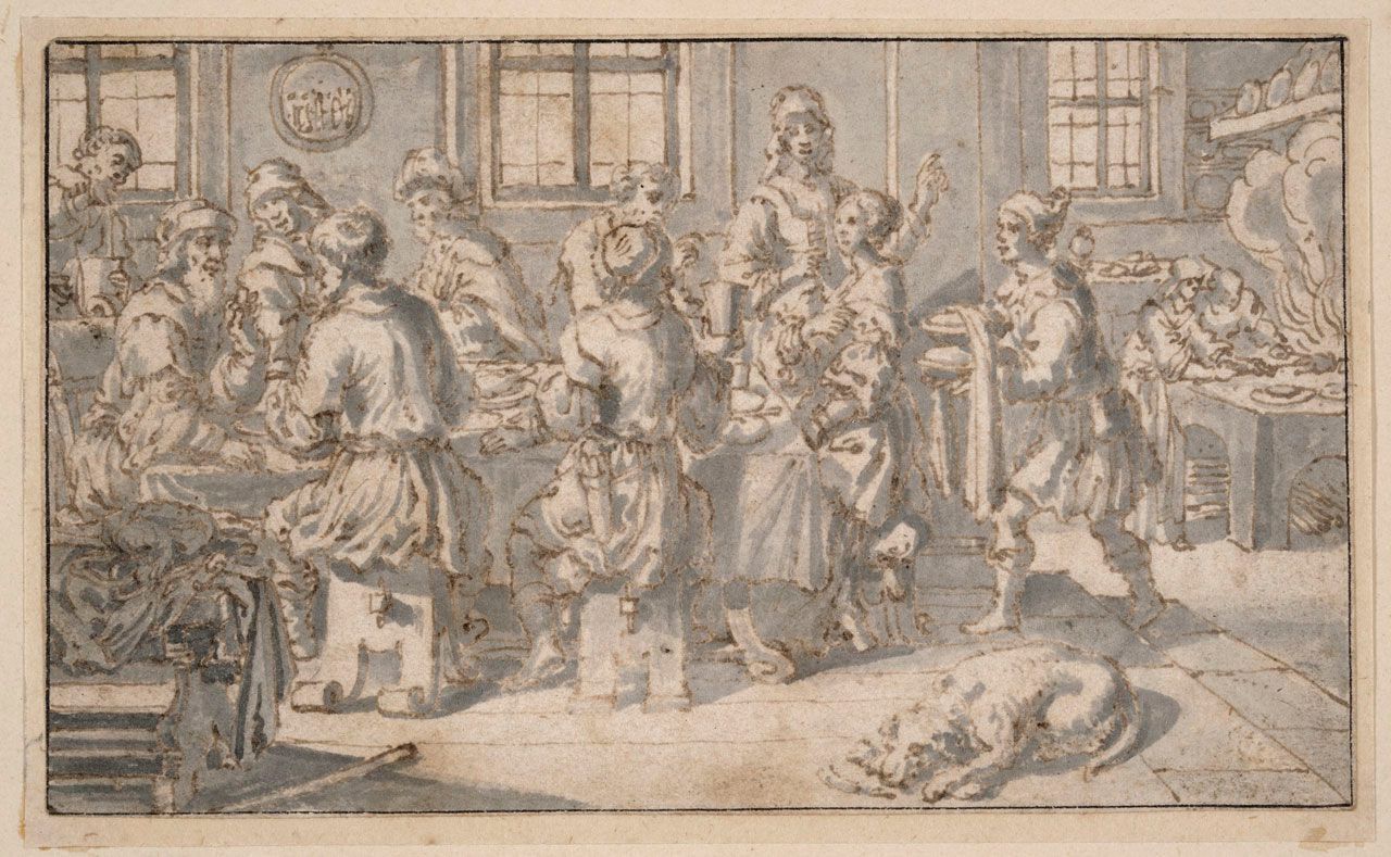Pen and brown ink with gray wash on paper,