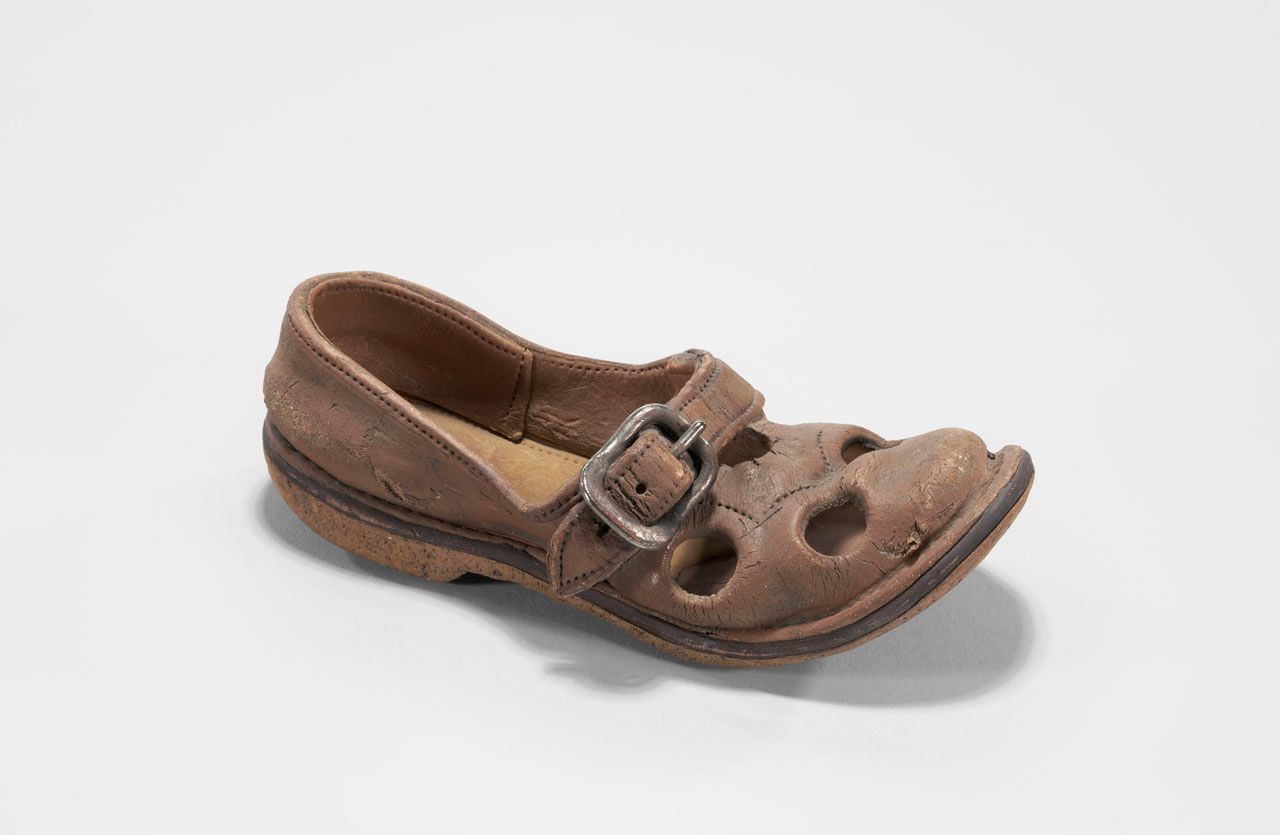 Nancy Selvin wrote "All gifts to me from the artist at the time work was created. The sock was made during her student days at UCB, probably about 1969 when she first discovered the magic of making clay look like fabric and leather. The glove was a bit later, maybe late 1969 or early 1970 as she was perfecting her technical skills. The shoe was included in one of her first exhibitions at Hanson Fuller in SF"