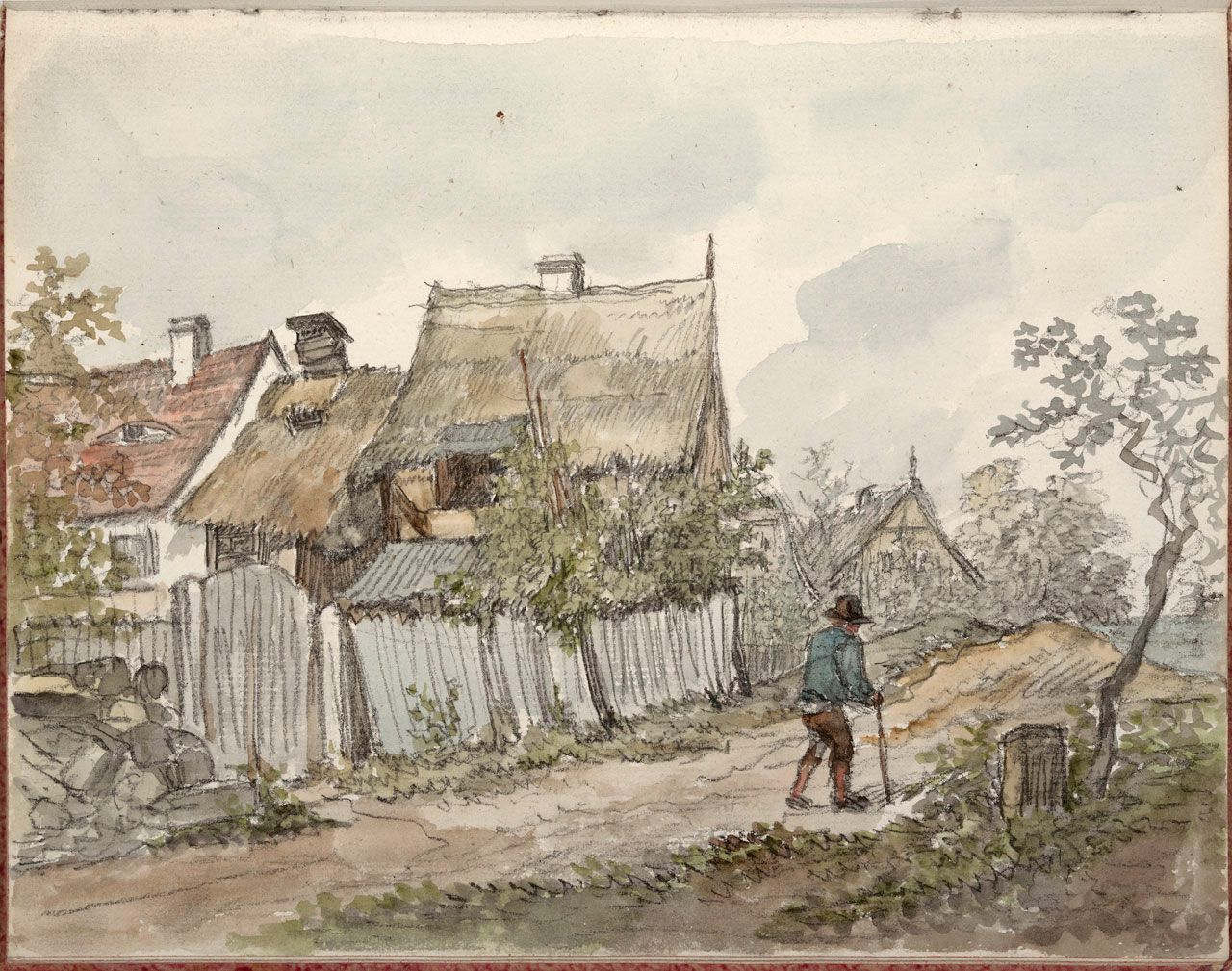 Volume with sixteen black chalk and graphite drawings, one with brush and brown, green, reddish, gray watercolor, on cream laid paper