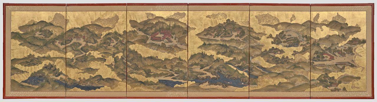 Ink, color, and gold leaf on paper