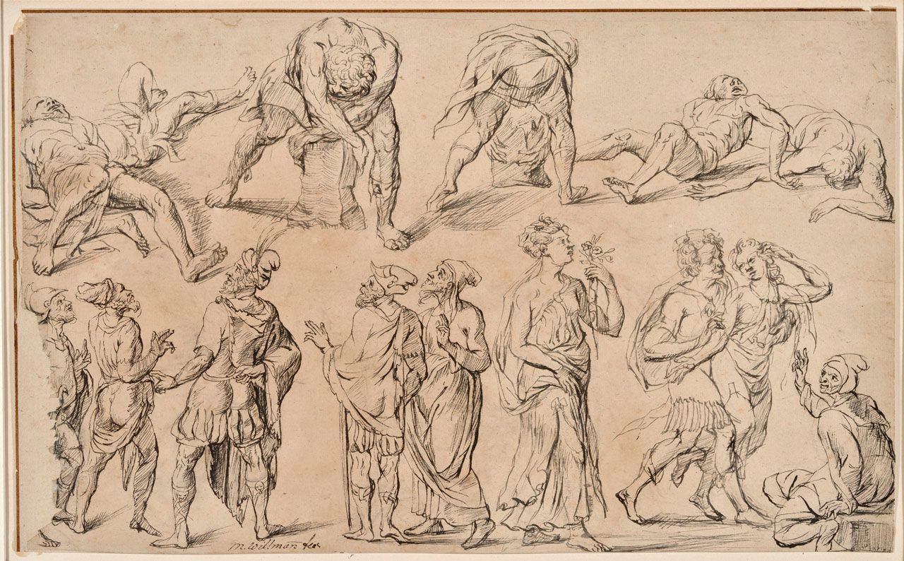 Pen and black ink on paper,
