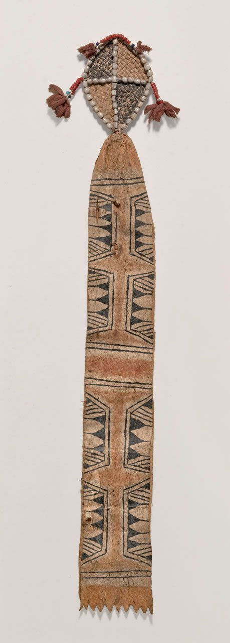 Barkcloth, red fiber, Job's tears, seed beads, and pigments