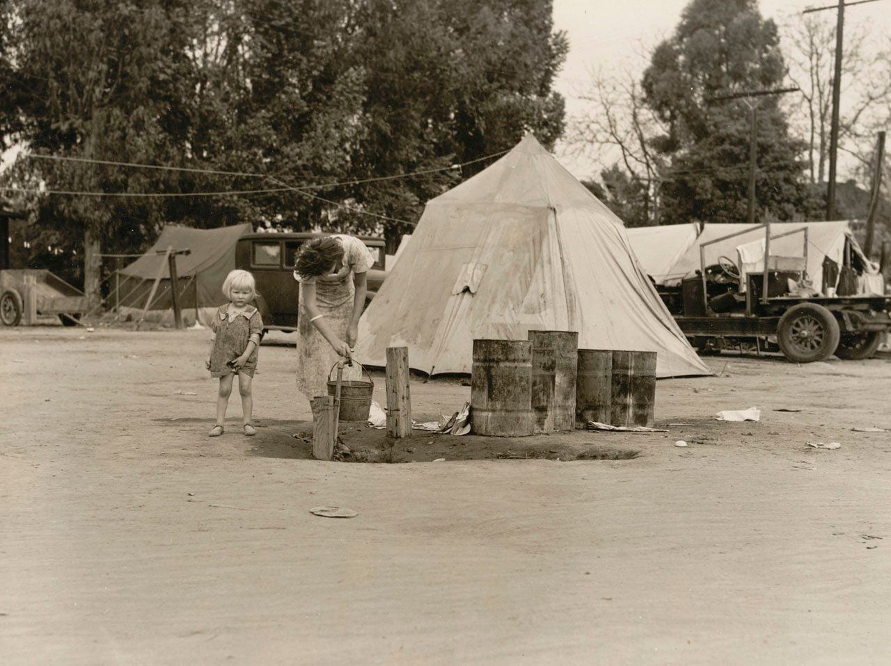 Texas Drought Refugees in Cotton Camp Near Exeter, CA