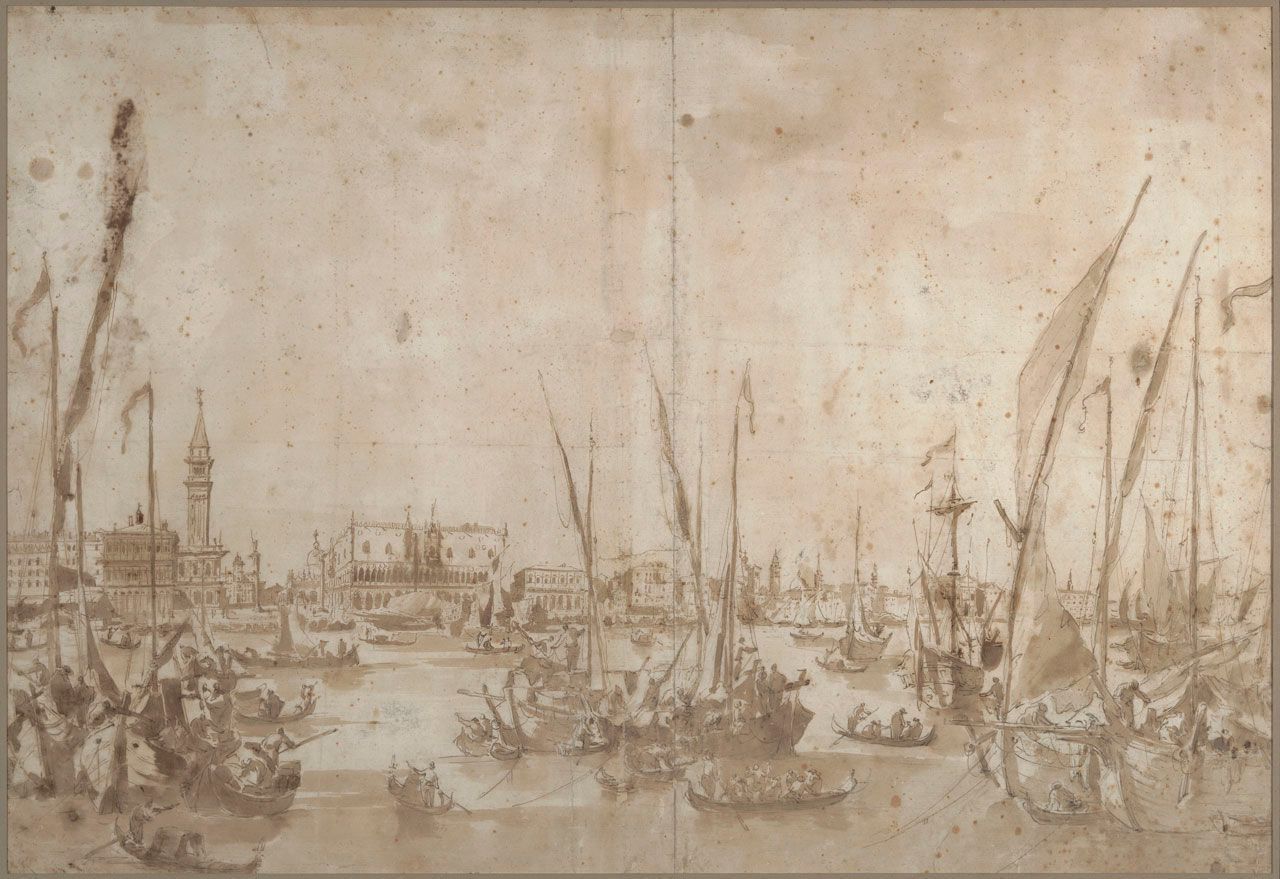 Pen and dark brown ink, brush and brown washes over black chalk on cream laid paper
