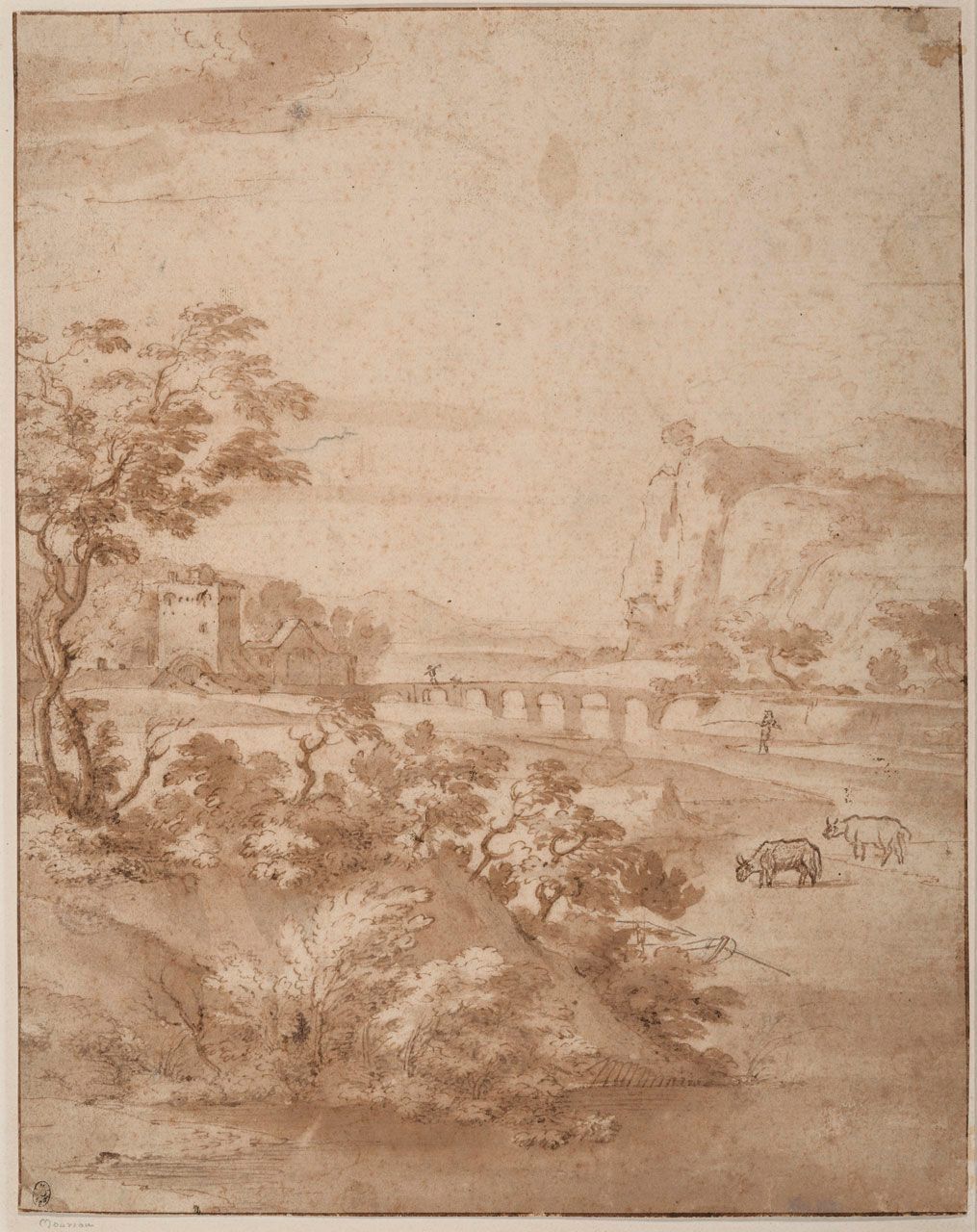 Pen and brown ink, brush, and brown washes on cream laid paper