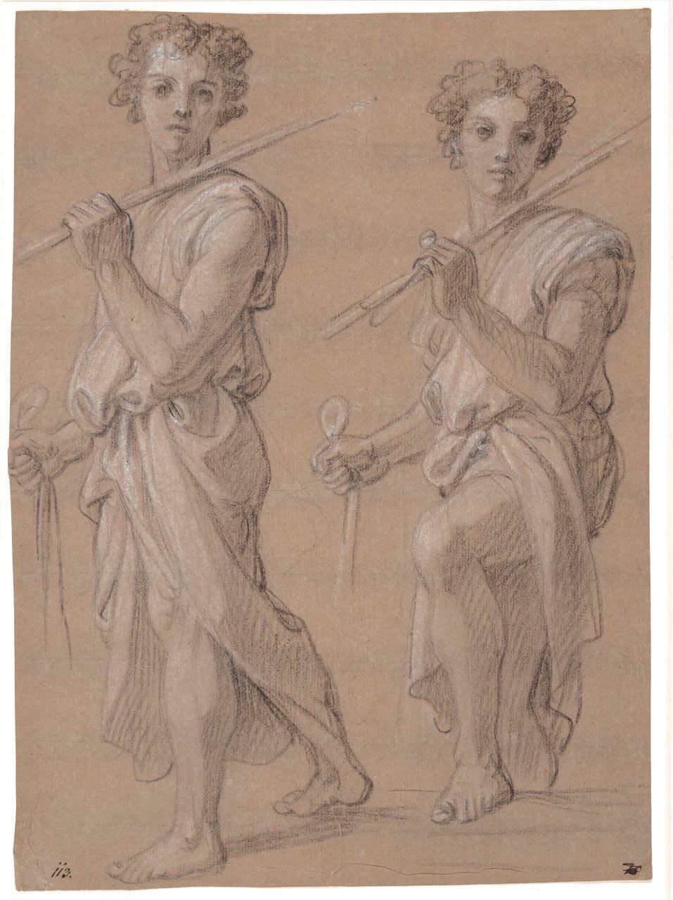Black and white chalk on brown laid paper