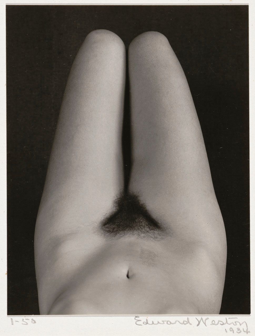 In Mexico, Weston also began to focus on close-up studies of nature, investigating subjects such as vegetables, shells, trees, rocks and clouds. In Carmel, where he lived from 1929 to 1935, he added coastal subjects to his repertoire. He also began a series of nudes. The latter most often depicted Charis Wilson, whom he met in 1934, the year he made this intimate image. He married her three years later.