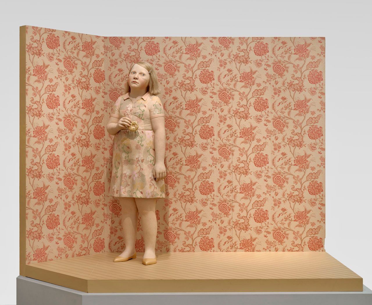 Stoneware, with paint, pastel, and synthetic hair