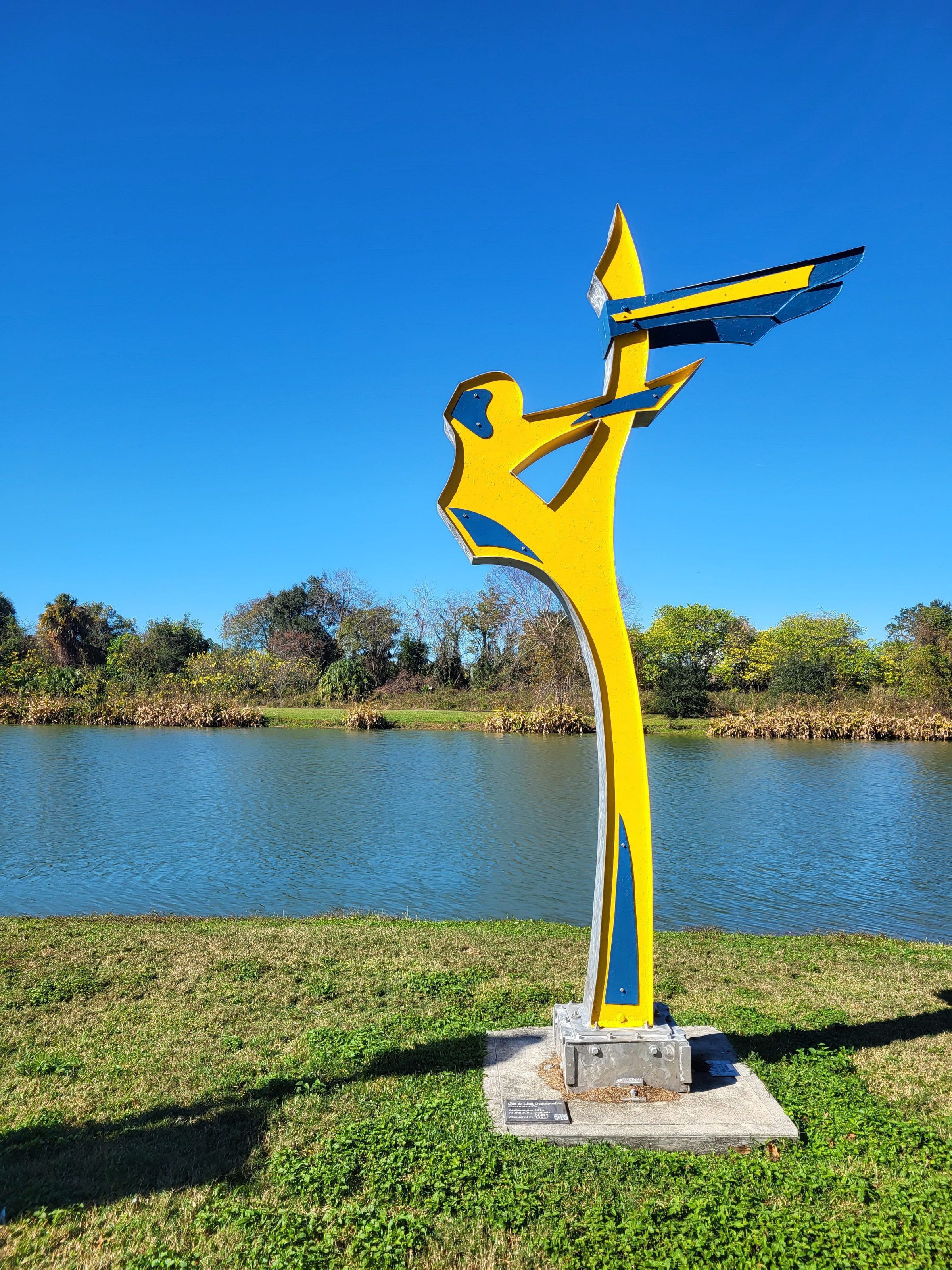 A yellow figure standing on one leg, the other leg is vertically upward overlapping with an arm.