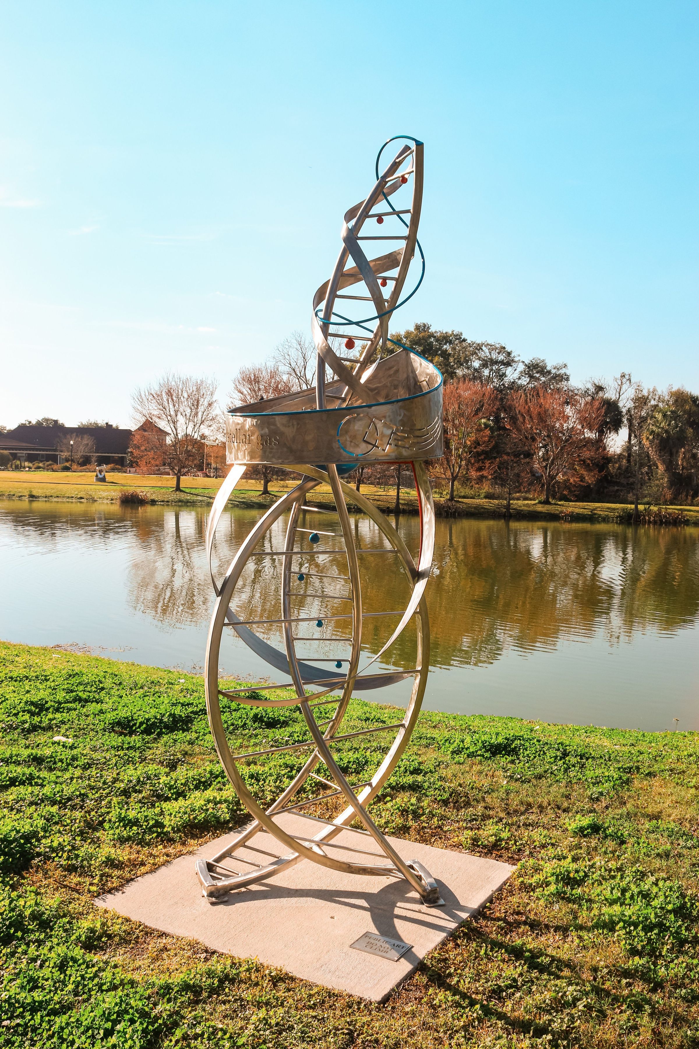 Abstracted double helix sculpted from steel and other media