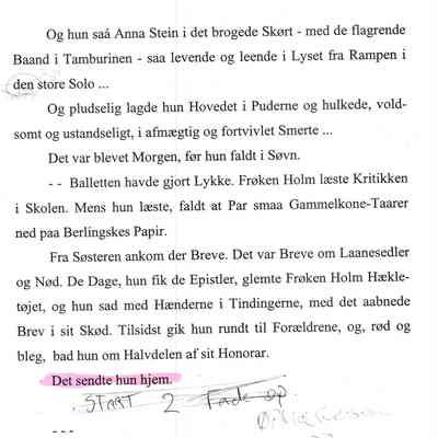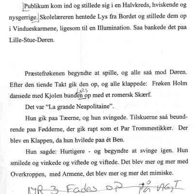 Dele af Herman Bangs tekst med noter til forestillingen.Location