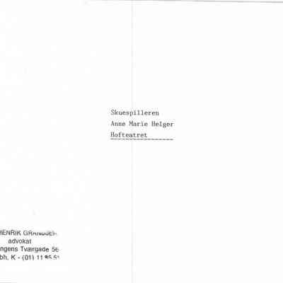 Skuespillerinden Anne Marie Helger,Entry/Object ID