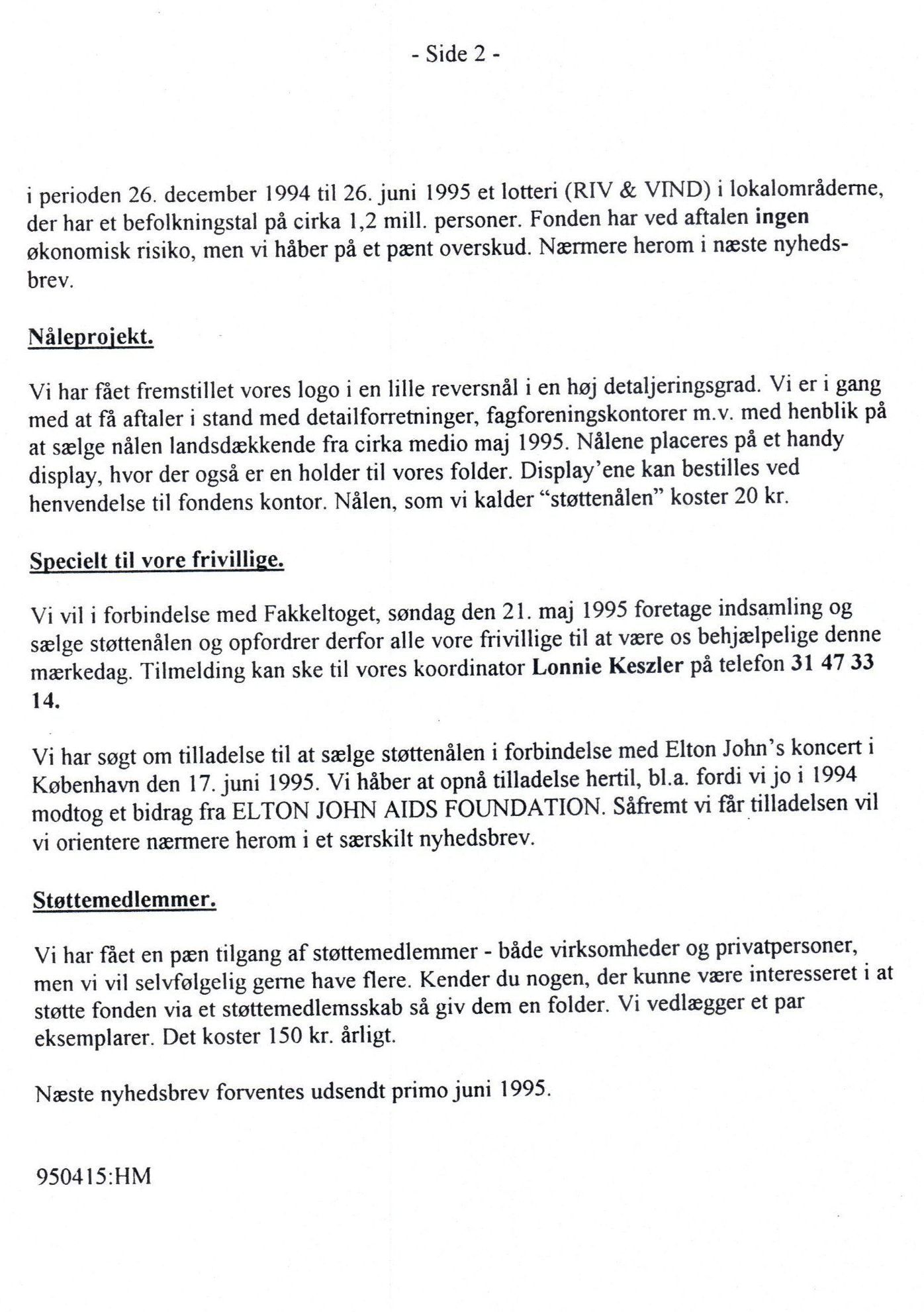 Frederiksø, Mappen "Navneprojektet og AIDS-støtte + presseudklip"Date