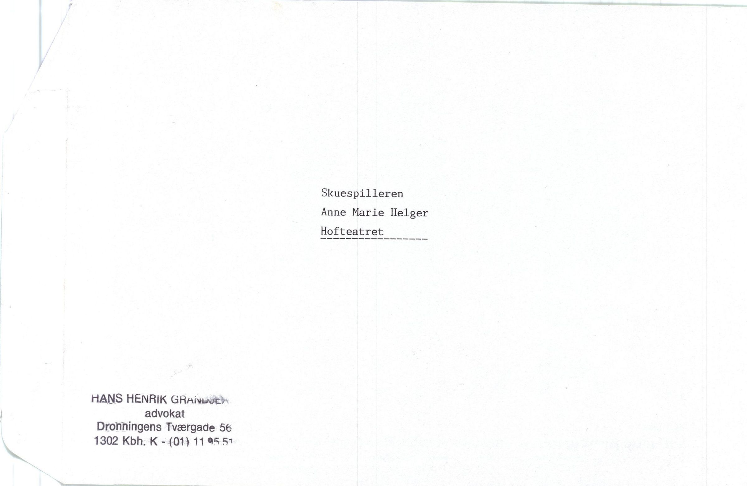 Skuespillerinden Anne Marie Helger,Entry/Object ID