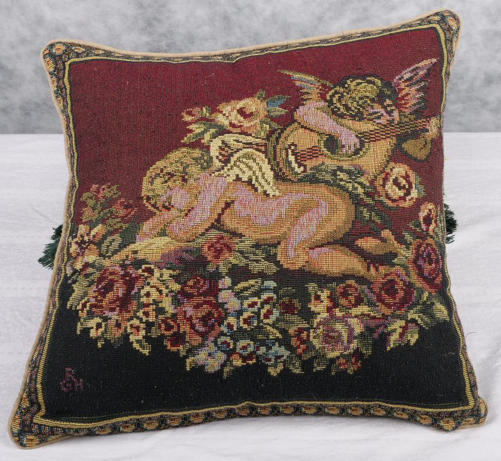 2x woven cushin covers dipicting cherubs