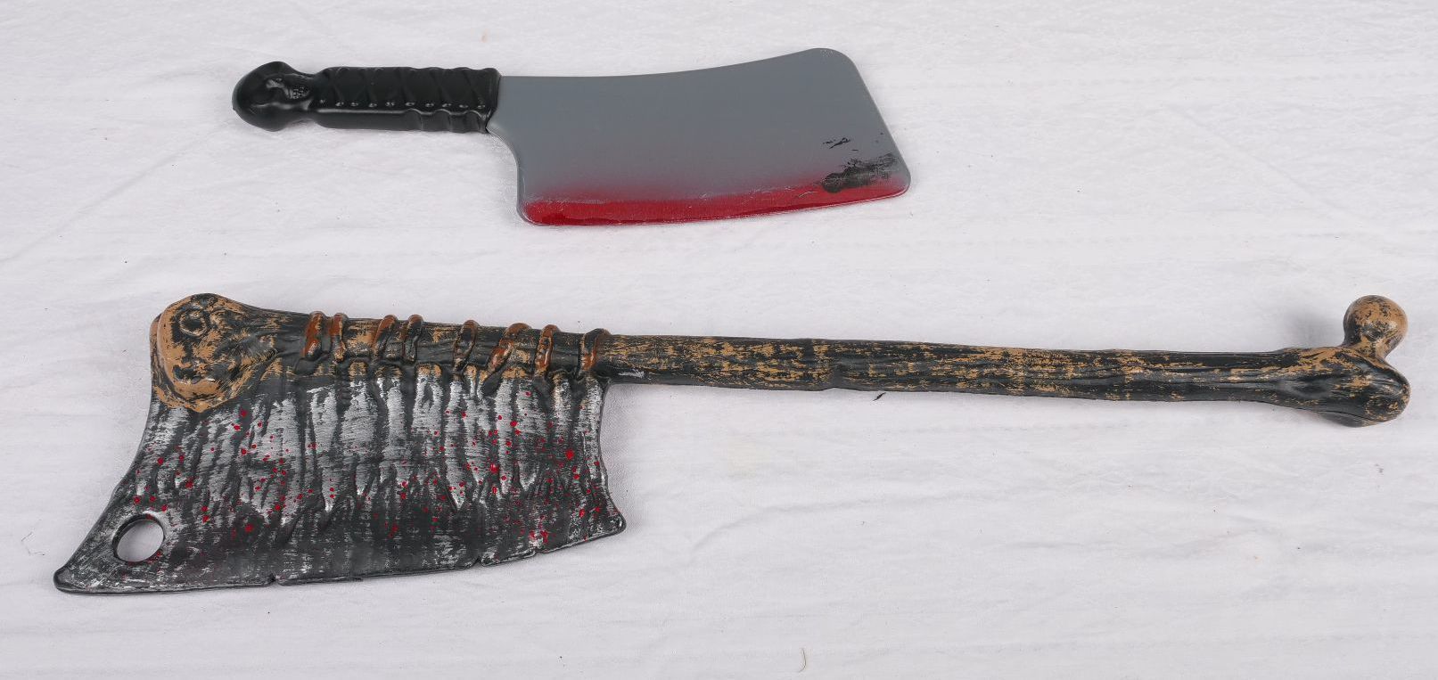 2x Plastic "Horror" cleavers. 55cm and 33cm long