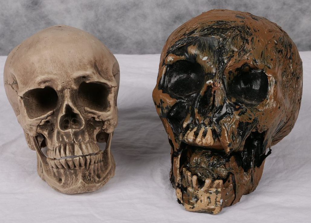 Left skull- 15 cm high and Right- 17 cm high