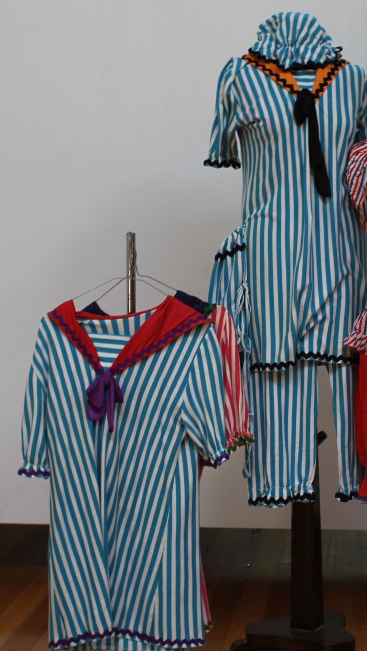Stripe bathers for old fashioned men and women's bathing