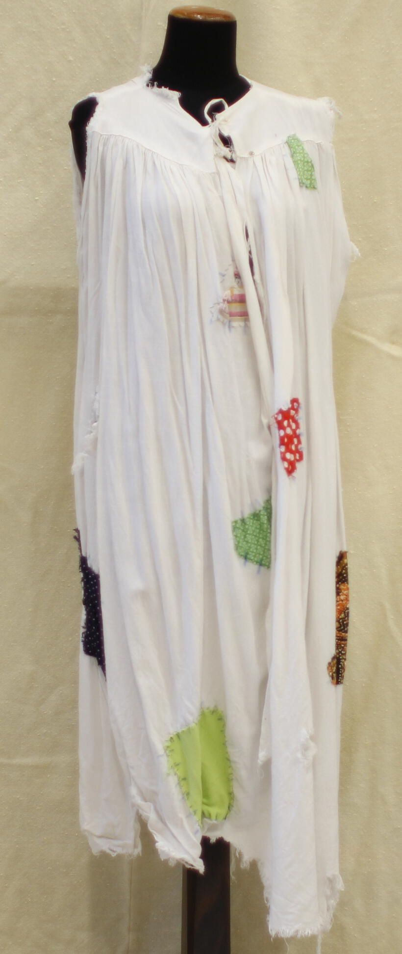 Raggedy cotton sleeveless dress with colourful fabric patches