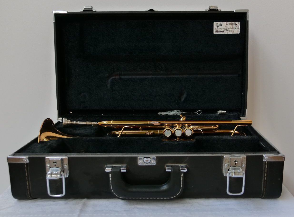 Brass trumpet with case