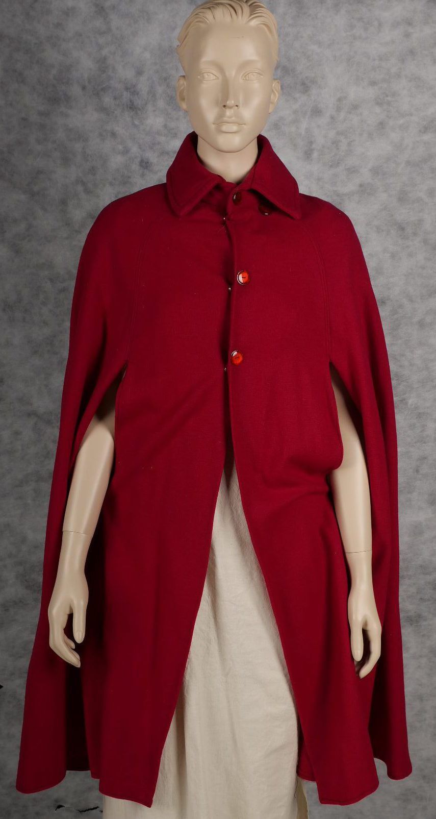 Red wool collered cape with arm holes