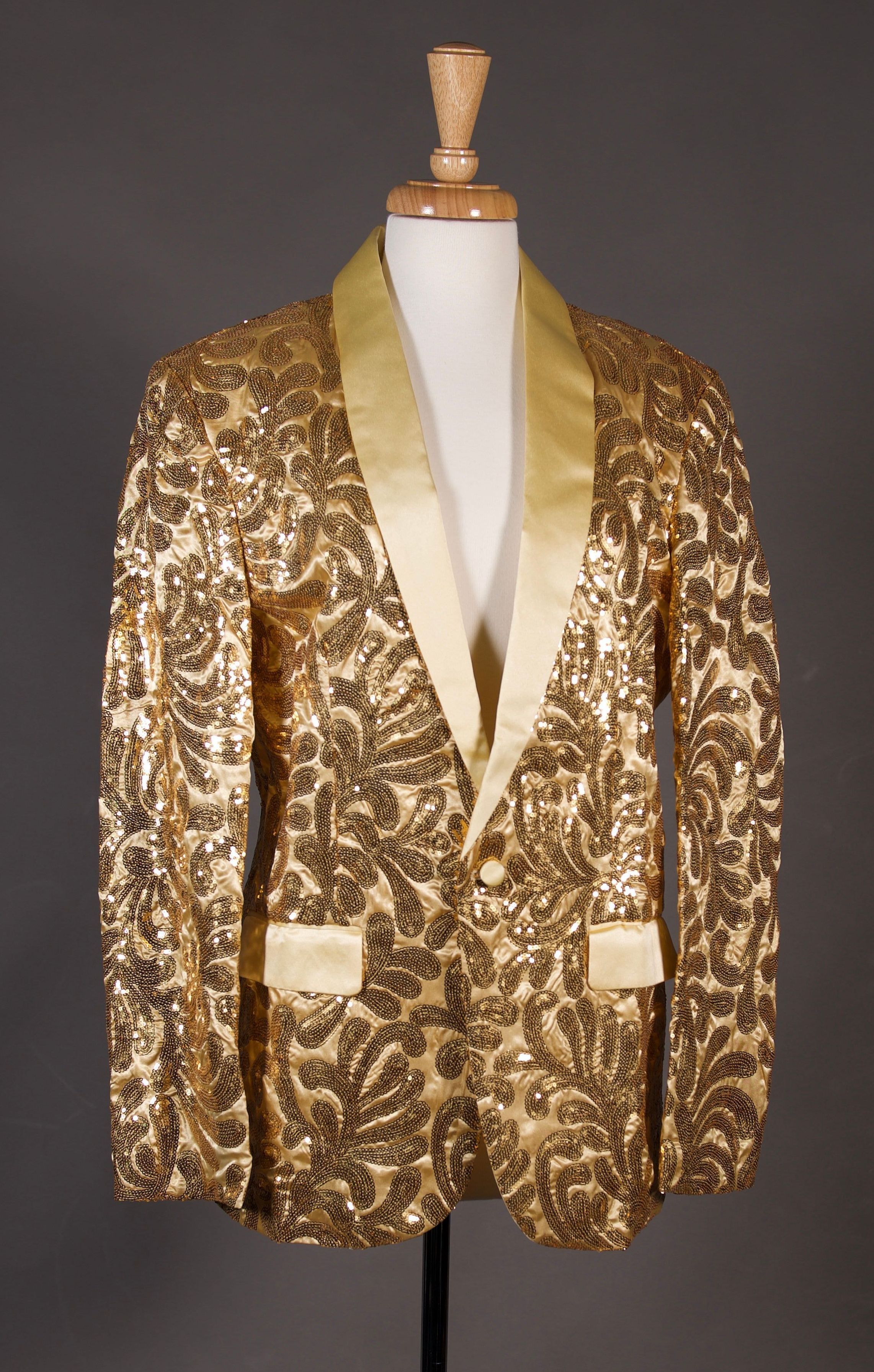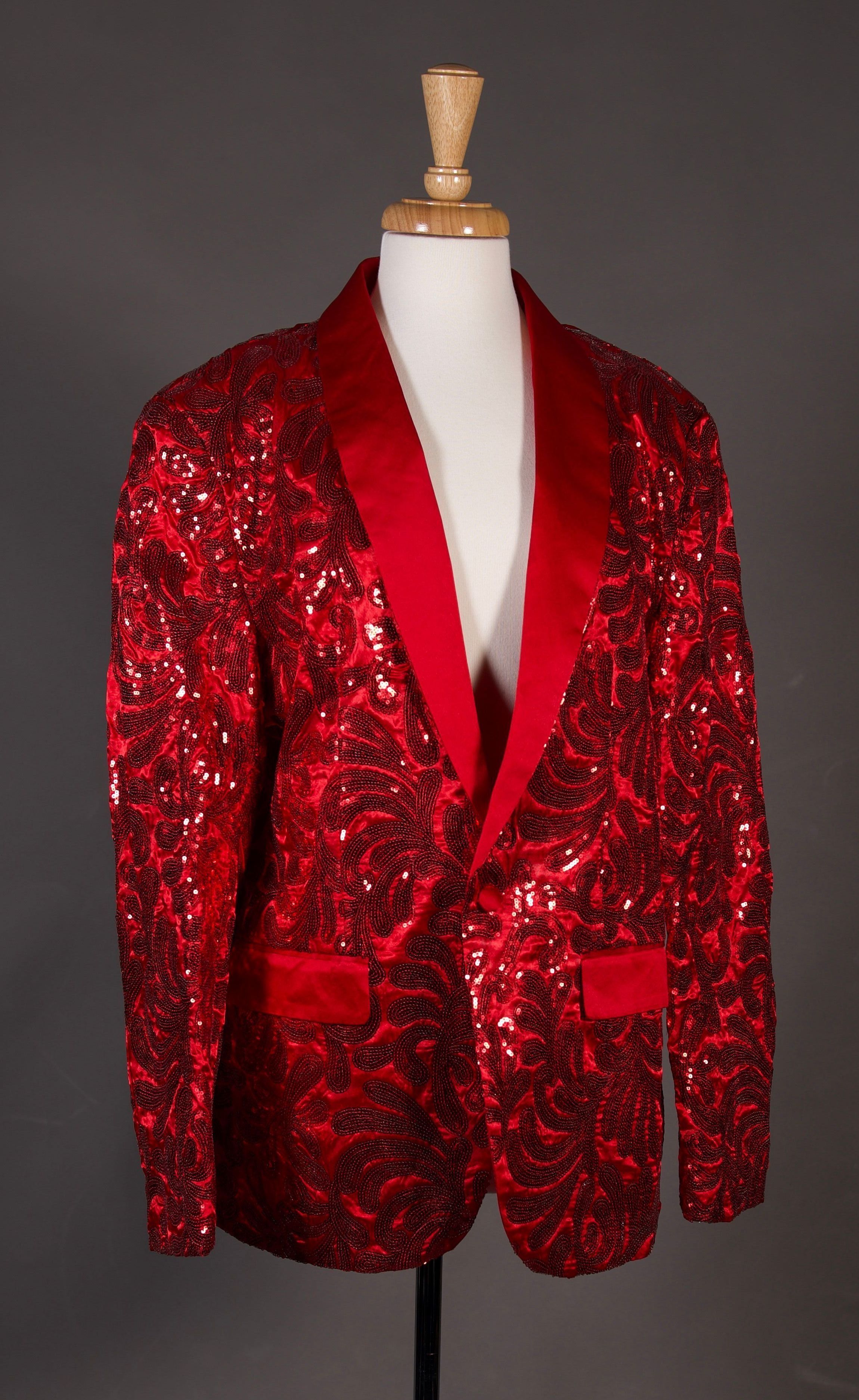 Gold or Red sequinned jackets with gold satin pocket flaps and collar