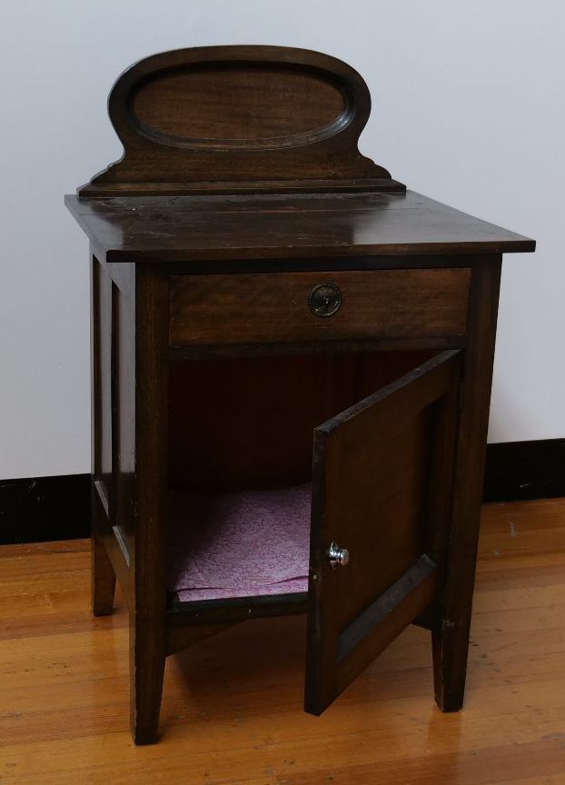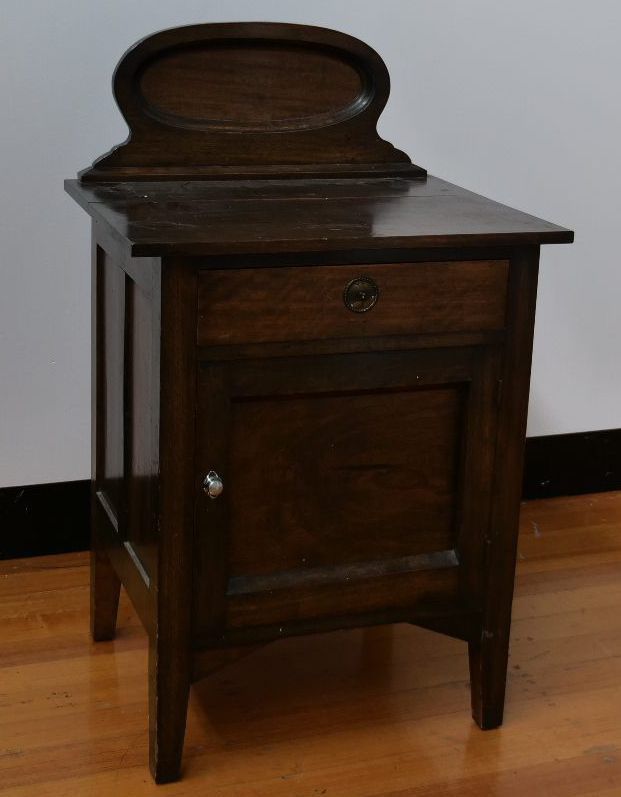 Vintage dark wood cabinet with 1 drawer and a cupboard space