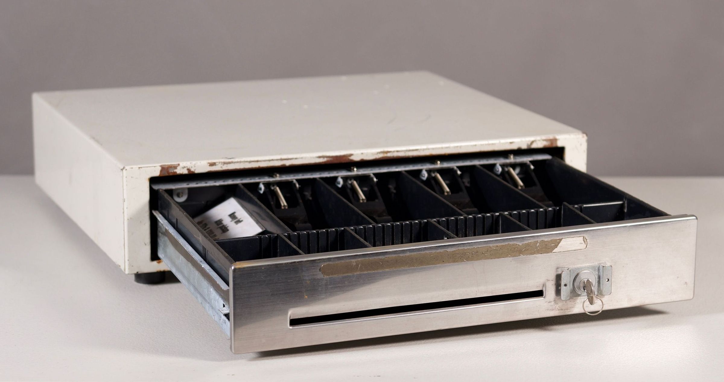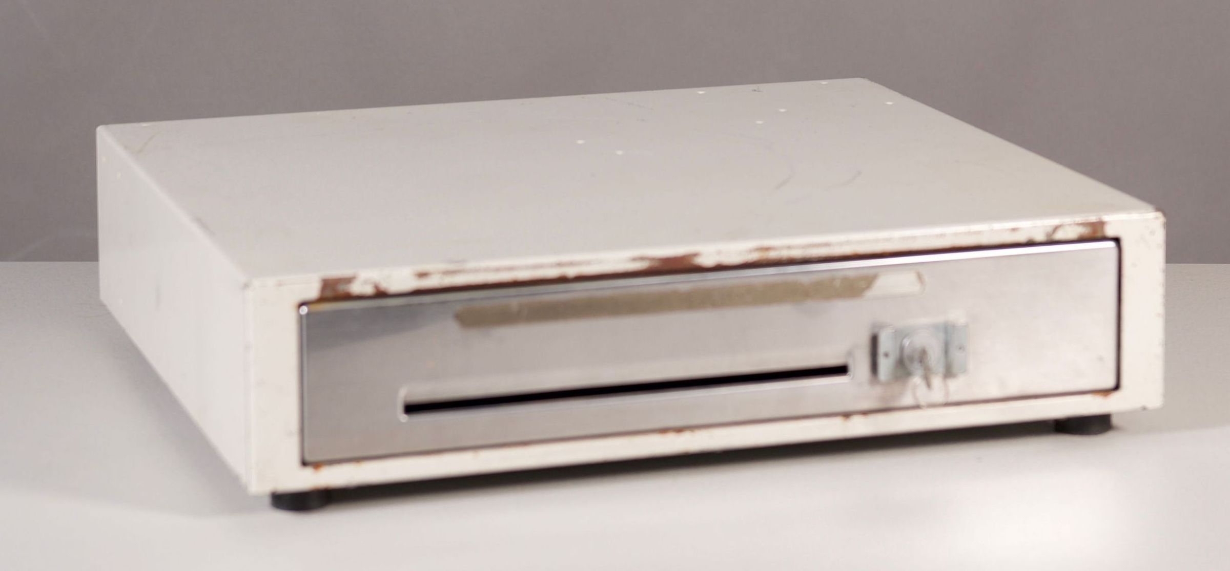 Old metal cash drawer with key