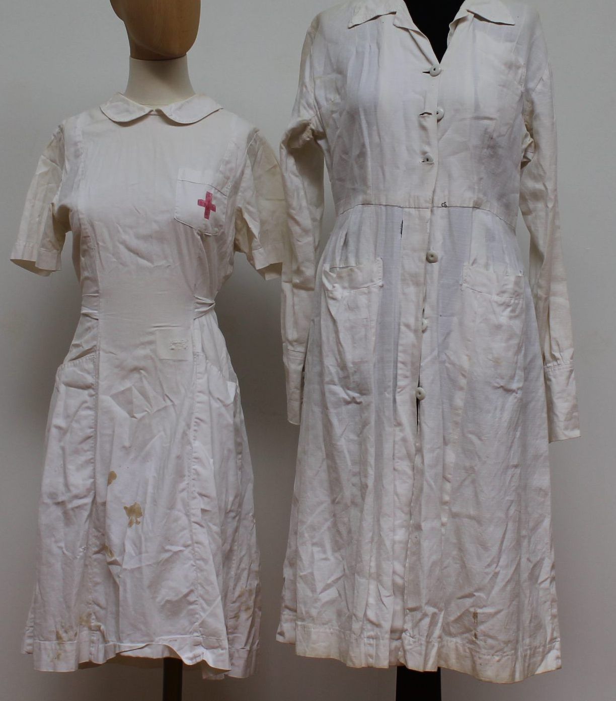 old broken down white smock and button front dress