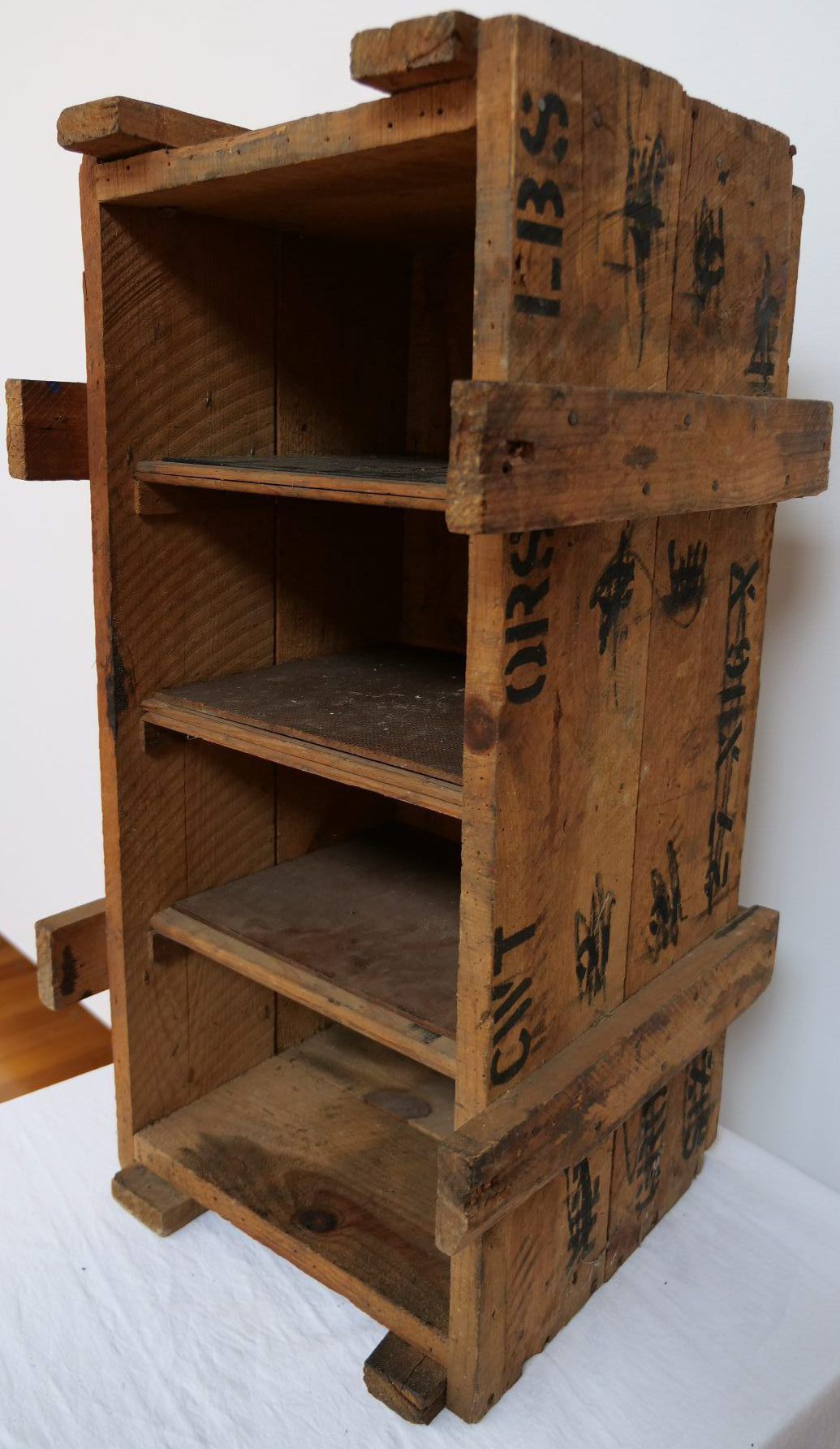 Rustic wooden shelves made from old crateUse