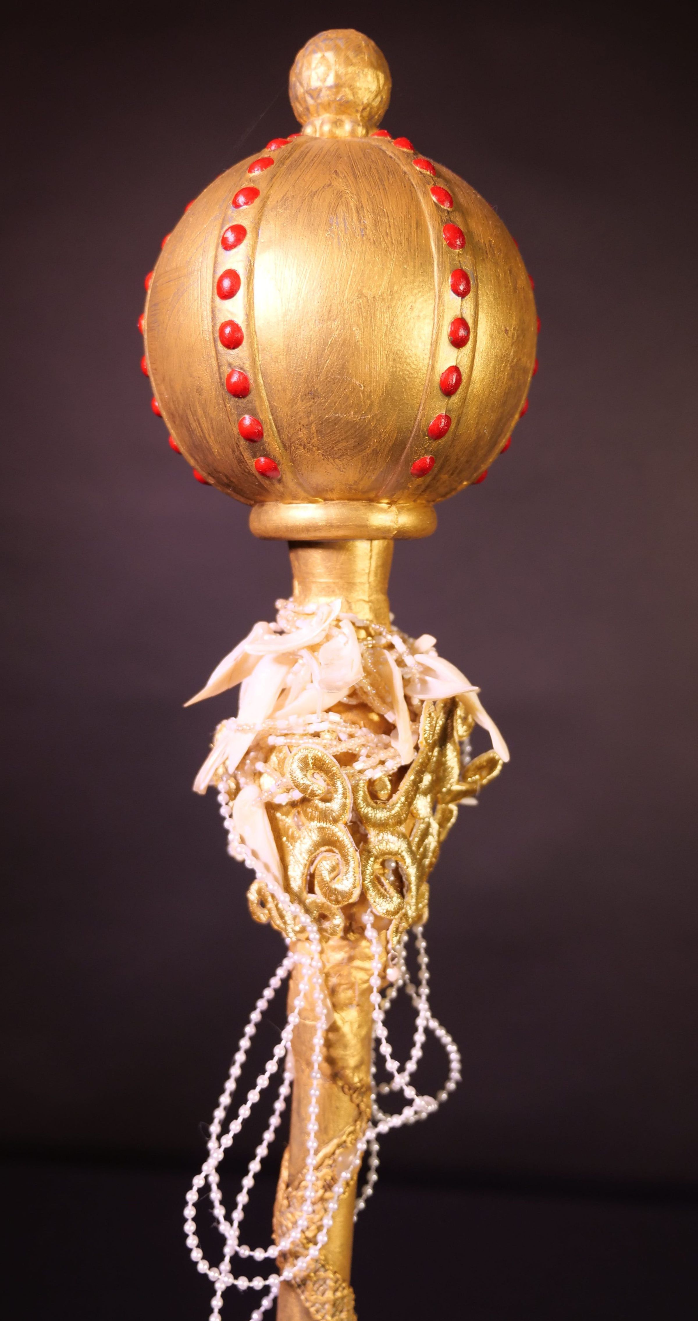 Plastic sceptre on pole, painted gold