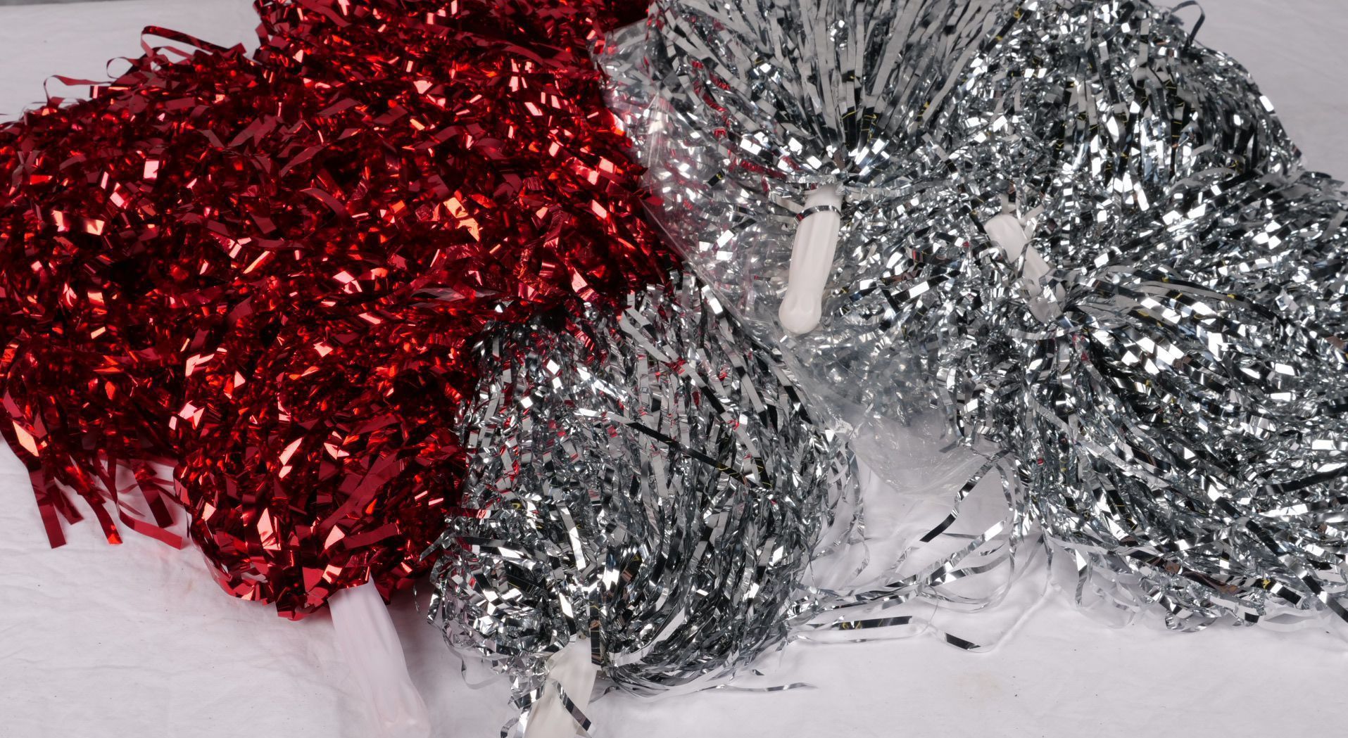 9 pairs of silver red metallic streamer pom poms