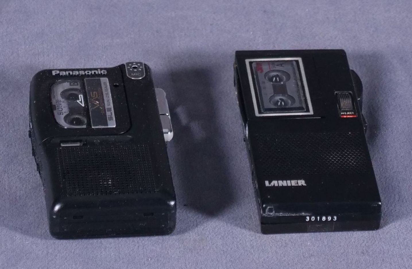 2x small hand voice recorders each with a cassette. Lanier has three extra tapes