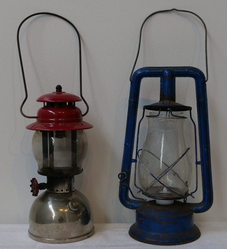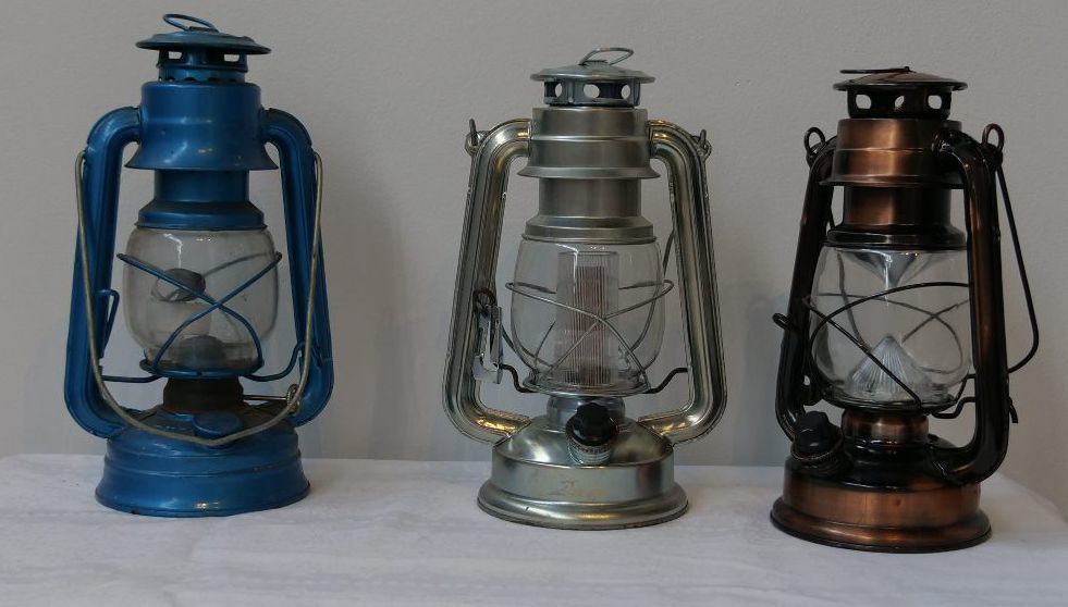 Blue tradition oil lantern and silver and copper with Led Globes (battery operated)