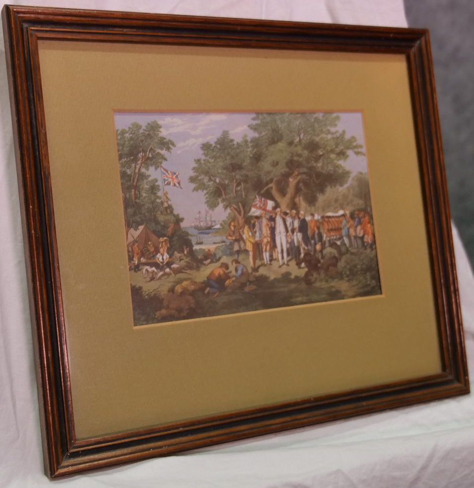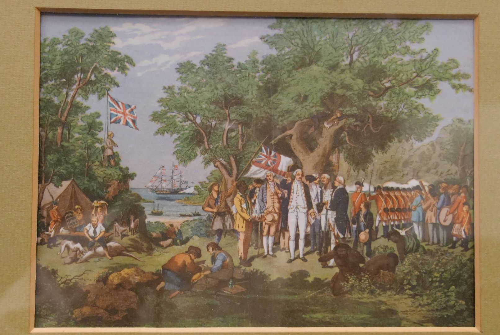 Reproduction of an engraved drawing by Samuel Calvert. "Captain Cook taking procession of the Australian content, on behalf of the British Crown." 1865
